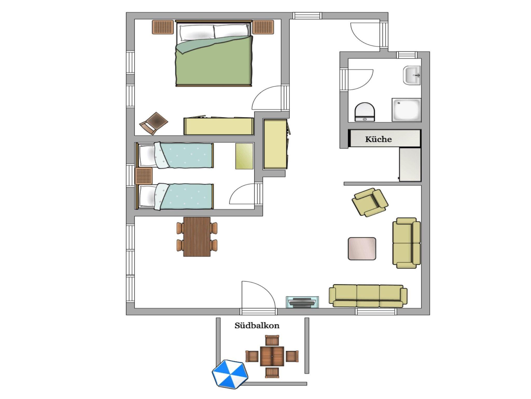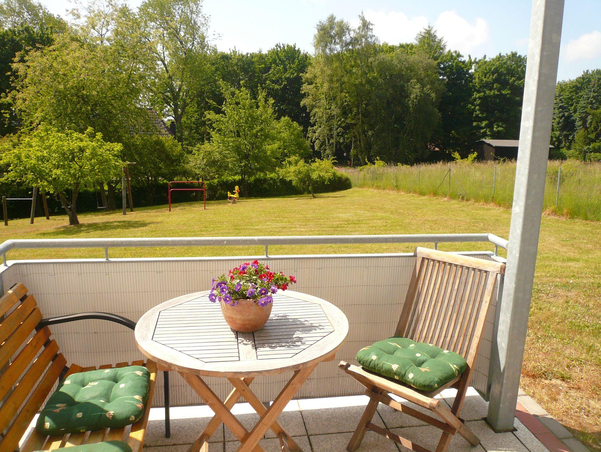 • Der überdachte Südbalkon bzw. die Südterrasse (je nach Verfügbarkeit) ist möbliert. An sonnigen Tagen haben Sie von morgens bis abends Sonne und natürlich einen Sonnenschirm. Den Kinderspielplatz auf unserem weitläufigen Gelände haben Sie im Blick.