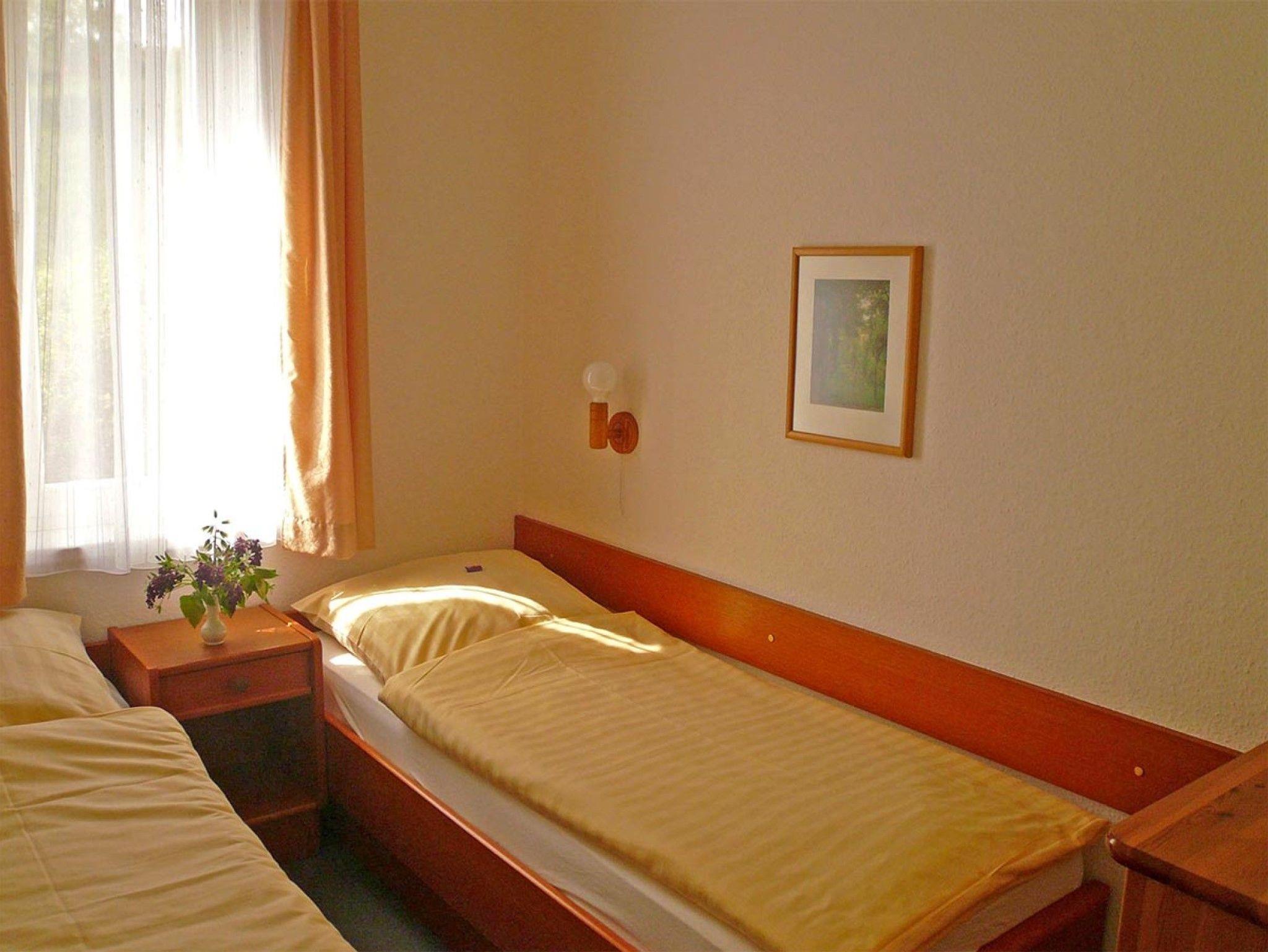• Ein Schlafzimmer mit zwei Einzelbetten (0.80 x 1,90).