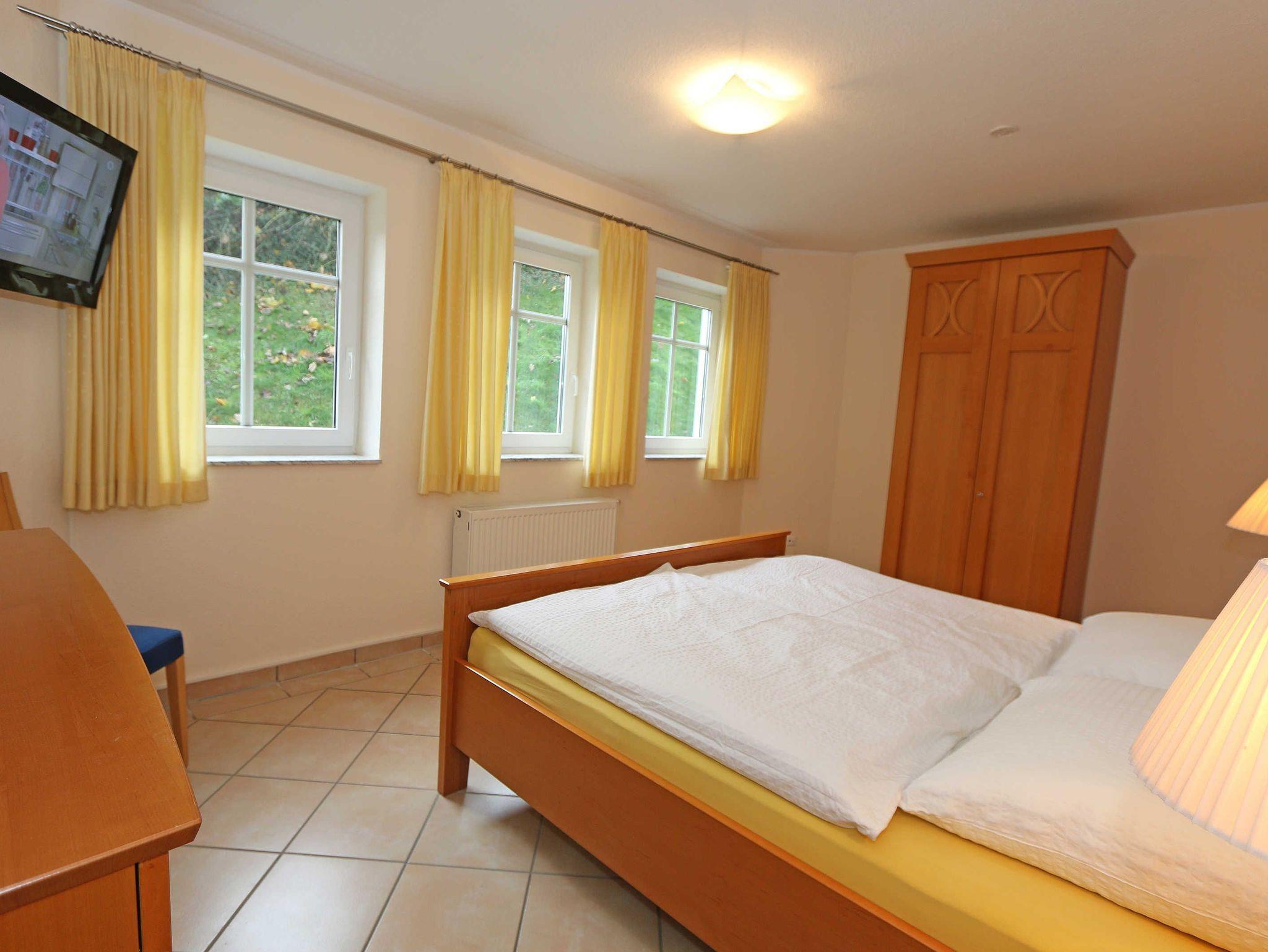 Die lichtdurchflutete, komfortable Nichtraucherwohnung verläuft auf über 78 m² und ist ideal für 2 bis 4 Personen geeignet. Ein Kleinkind (3 Jahre) im Kinderreisebett kann als Aufbettung (5. Person) untergebracht werden. Die beiden Terrassen (Richtung Westen und Süden) laden zum Verweilen ein und erlauben es Ihnen den ganzen Tag die mitwandernde Sonne zu genießen. Der kombinierte Wohn- und Essbereich ist mit einer hellen Küchenzeile ausgestattet. Die Küchenzeile beinhaltet ein Ceranfeld, Backofen, Geschirrspüler, Mikrowelle, Kühlschrank mit Gefrierfach, Kaffeemaschine, Senseo Kaffeeautomat, Toaster, Wasserkocher sowie diverse Küchenutensilien. Der dazugehörige Essbereich umfasst einen Esstisch mit 4 Stühlen. Ein Wohnbereich mit Sofa, Sessel, Couchtisch, Vitrine, Leselampe, Flatscreen-TV mit DVD-Player, Stereoanlage mit CD-Player und eine kleine Auswahl an Gesellschaftsspielen runden das Ganze ab. Das 1. Schlafzimmer ist mit einem Doppelbett (1,80 m x 2,00 m), 2 Nachtschränken, einen Flachbild-TV und Kleiderschrank ausgestattet. Das 2. Schlafzimmer verfügt ebenfalls über ein Doppelbett (1,80 m x 2,00 m) und 2 Nachtschränke und einen Kleiderschrank. Für einen ruhigen Schlaf sorgen in beiden Schlafzimmern Rollläden. Das großzügige Bad ist mit einer Dusche mit flachem Einstieg, Fön, WC und Waschtisch ausgestattet. In einem separaten Abstellraum, welcher zur Wohnung gehört finden Sie diverse Reinigungsutensilien sowie einen Wäscheständer. Auch im Urlaub brauchen Sie auf einen Internetzugang (WLAN über Hotspot) in Ihrer Wohnung nicht zu verzichten. Dieser ist inklusive. 1x Kinderreisebett (ohne Matratze und Bett Inlett) ist für unsere kleinen Gäste inklusive. Ein Hochstuhl kann gegen eine Extragebühr dazu gebucht werden. Haustiere sind nicht erlaubt. In einem Gemeinschaftsraum können Sie gegen einen Aufpreis eine Waschmaschine und einen Trockner nutzen. Der Parkplatz (Nr. 2) befindet sich direkt auf dem Grundstück. Ihre Fahrräder können Sie auf dem Areal in einen Fahrradschuppen unterstellen. Ein Gemeinschaftsgrillplatz mit massiven Holzbänken und Standgrill ist vorhanden. Die Erstausstattung eines Wäschepaketes (komplette Bettwäsche, 1 Duschhandtuch, 2 kleine Handtücher) können Sie bis 14 Tage vor Anreise gegen einen Aufpreis dazu buchen oder durch eigene ergänzen. Ab 2 gebuchten Paketen erhalten Sie einmalig 1 Geschirrhandtuch und 1 Duschvorleger hinzu.