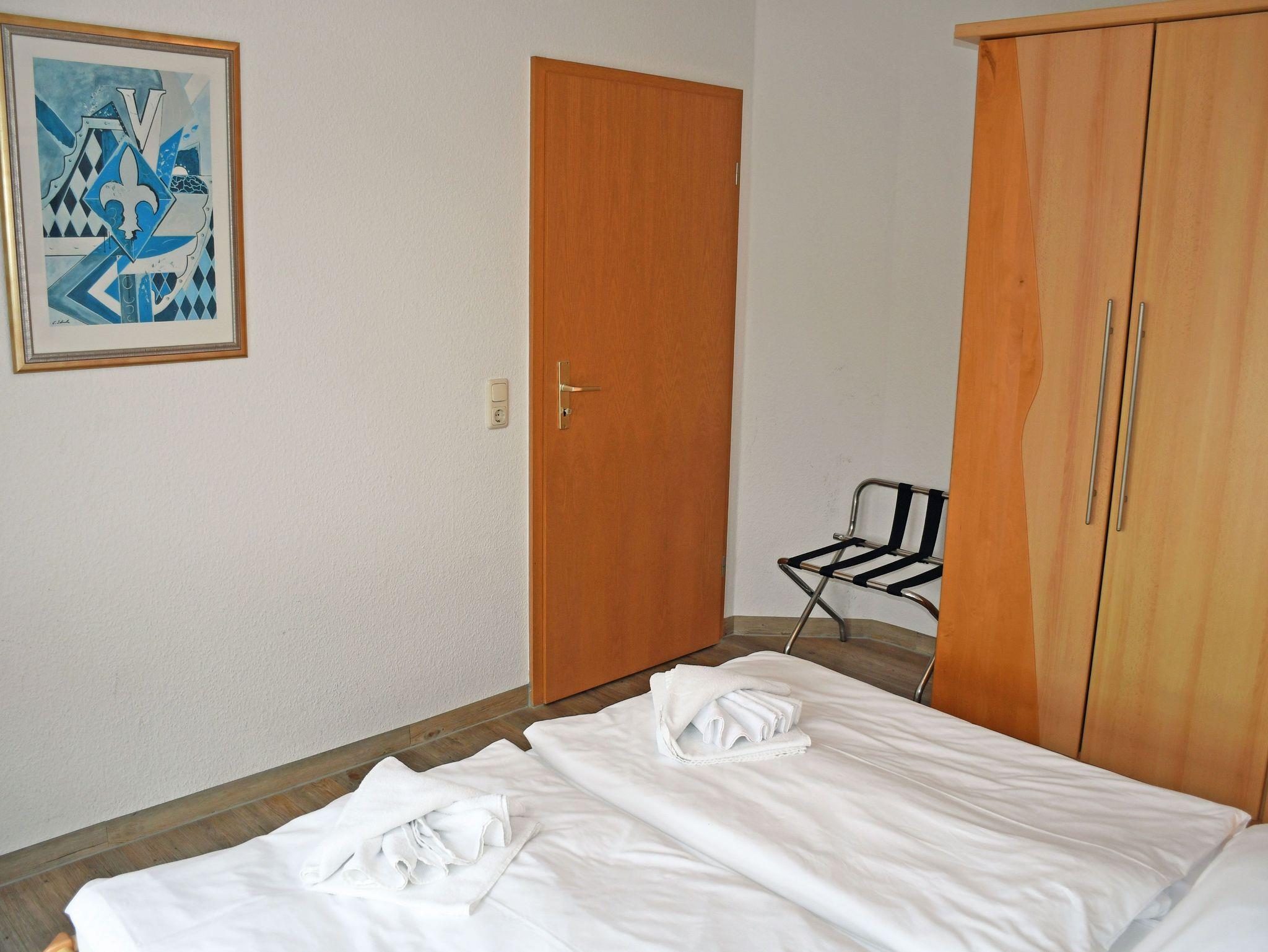 Schlafzimmer mit 2 getrennt stehenden Betten (90 x 200 cm) und kleinem Kleiderschrank
