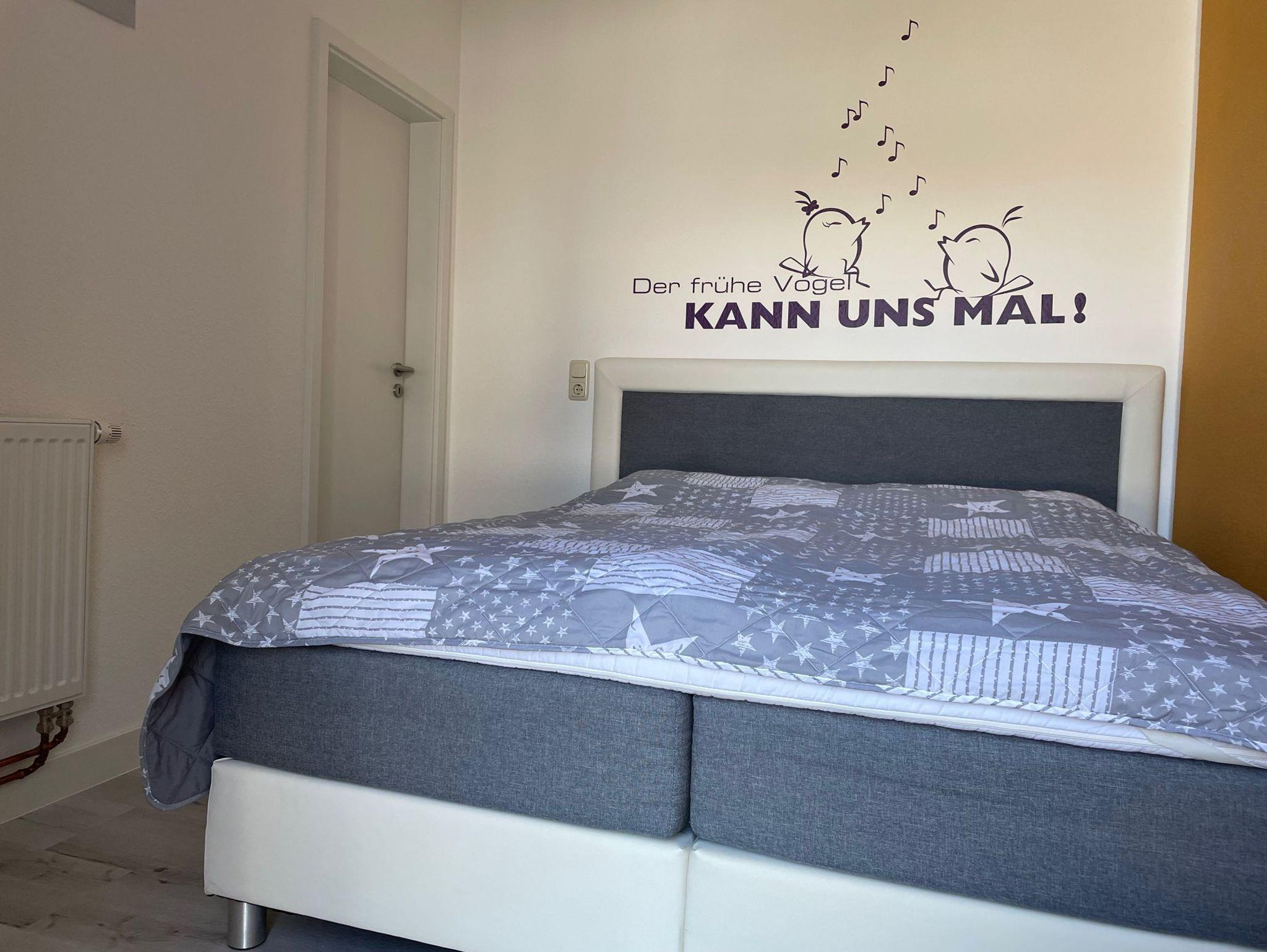 Die bis Mai 2019 komplett sanierte Fewo ist ca. 50 m² groß und für 4 Personen ausgestattet. Sie liegt im Parterre und verfügt über eine Terrasse. Die Wohnung ist hell, modern und freundlich ausgestattet. Die Wohnung beteht aus einem Schlafzimmer mit Boxspringbett (1,60x2,00m) und Kleiderschrank - Platz für ein Kinderbett wäre vorhanden (kann zusätzlich für 8,40 €/Woche gemietet werden), einem Wohnzimmer mit Sitzecke (Dauerschläfercouch in Boxspringausführung 1,60x2,20m), TV und Ausgang zur möblierten Terrasse, kleiner komplett eingerichteten Küche und Bad mit Dusche/WC. Bettwäsche und Handtücher sind bei einem Buchungszeitraum ab 10 Nächten inklusive, darunter kann Wäsche nur im Vorfeld (vor dem Anreisetag) gemietet werden. Ein PKW-Stellplatz befindet sich auf dem Nachbargrundstück.