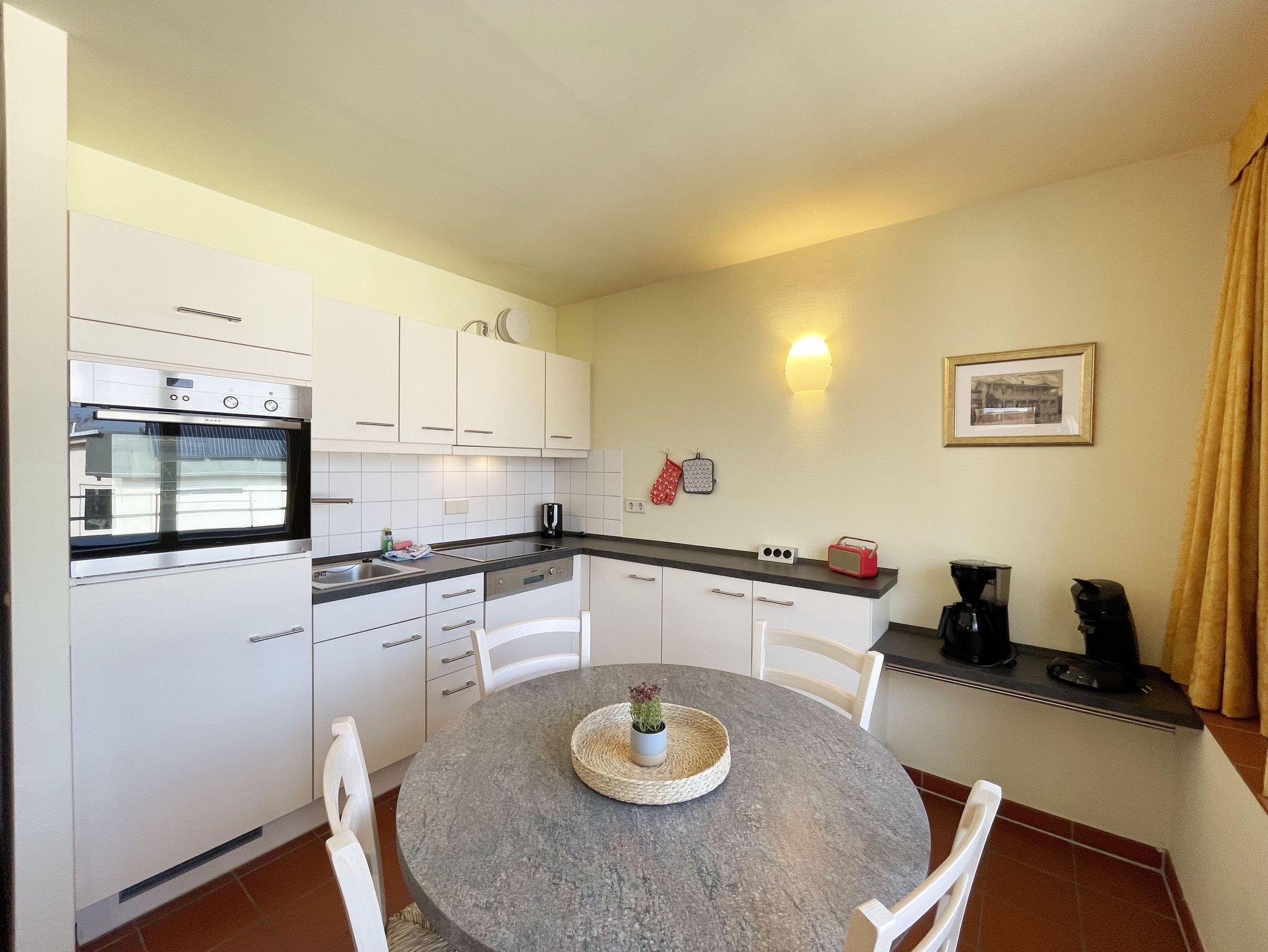 Die geräumige, nach Süd-Ost ausgerichtete 2-Zimmerwohnung ist etwa 40 qm groß und befindet sich im Dachgeschoss Das Appartement ist für 2 bis 4 Personen geeignet. Im Wohnbereich finden Sie eine komfortable Schlafcouch (1,60m x 2,00m), einen LED-Fernseher, einen Essplatz für 4 Personen sowie die Küchenzeile. Sie ist mit Cerankochfeld, Spülmaschine, Backofen, Kaffeemaschine, Wasserkocher, Toaster, Kühlschrank mit Eisfach und allen wichtigen Küchenutensilien ausgestattet. An den Wohnbereich grenzt die nach Osten gerichtete, bestuhlte Loggia. Das gemütliche Schlafzimmer verfügt über ein Doppelbett (2 x 0,90 x 2,00 m) mit 7-Zonen-Matratzen, einen Kleiderschrank und eine Spiegelkommode. Das Bad ist mit WC, Waschbecken und Föhn ausgestattet. Die geräumige Dusche ist ebenerdig zu begehen und mit Glaswänden abgetrennt. In der kühleren Jahreszeit wärmt die angenehme Fußbodenheizung in allen Räumen den Terracottaboden. Auch im Urlaub brauchen Sie auf einen WLAN-Zugang nicht verzichten. Dieser ist für Sie inklusive vorhanden. Ein eigener Stellplatz Nr. 35 für Ihr Fahrzeug befindet sich hinter dem Haus. In einem separaten Raum können mitgebrachte oder geliehene Fahrräder abgeschlossen werden. Auch 1 Vierbeiner ist gegen eine Gebühr ein gern gesehener Gast. Die Erstausstattung eines Wäschepaketes (komplette Bettwäsche, 1 Duschhandtuch, 1 kleines Handtuch) können Sie bis 14 Tage vor Anreise dazu buchen oder durch eigene ergänzen. Ab 2 gebuchten Paketen erhalten Sie einmalig 1 Geschirrhandtuch und 1 Duschvorleger hinzu.