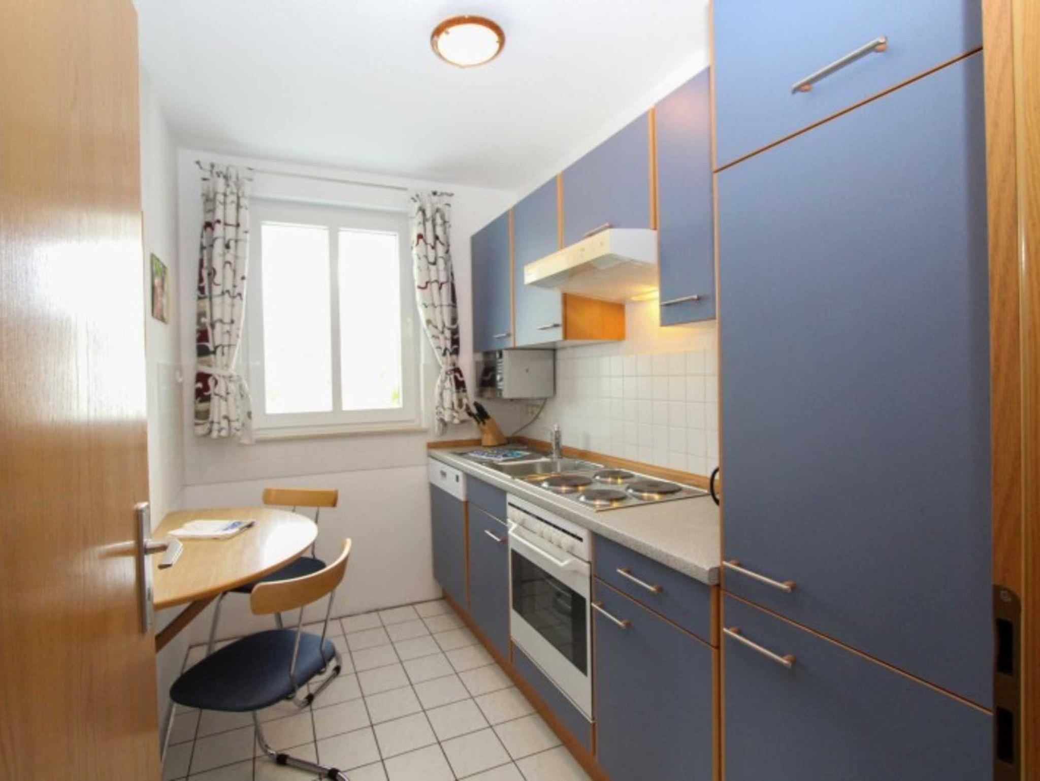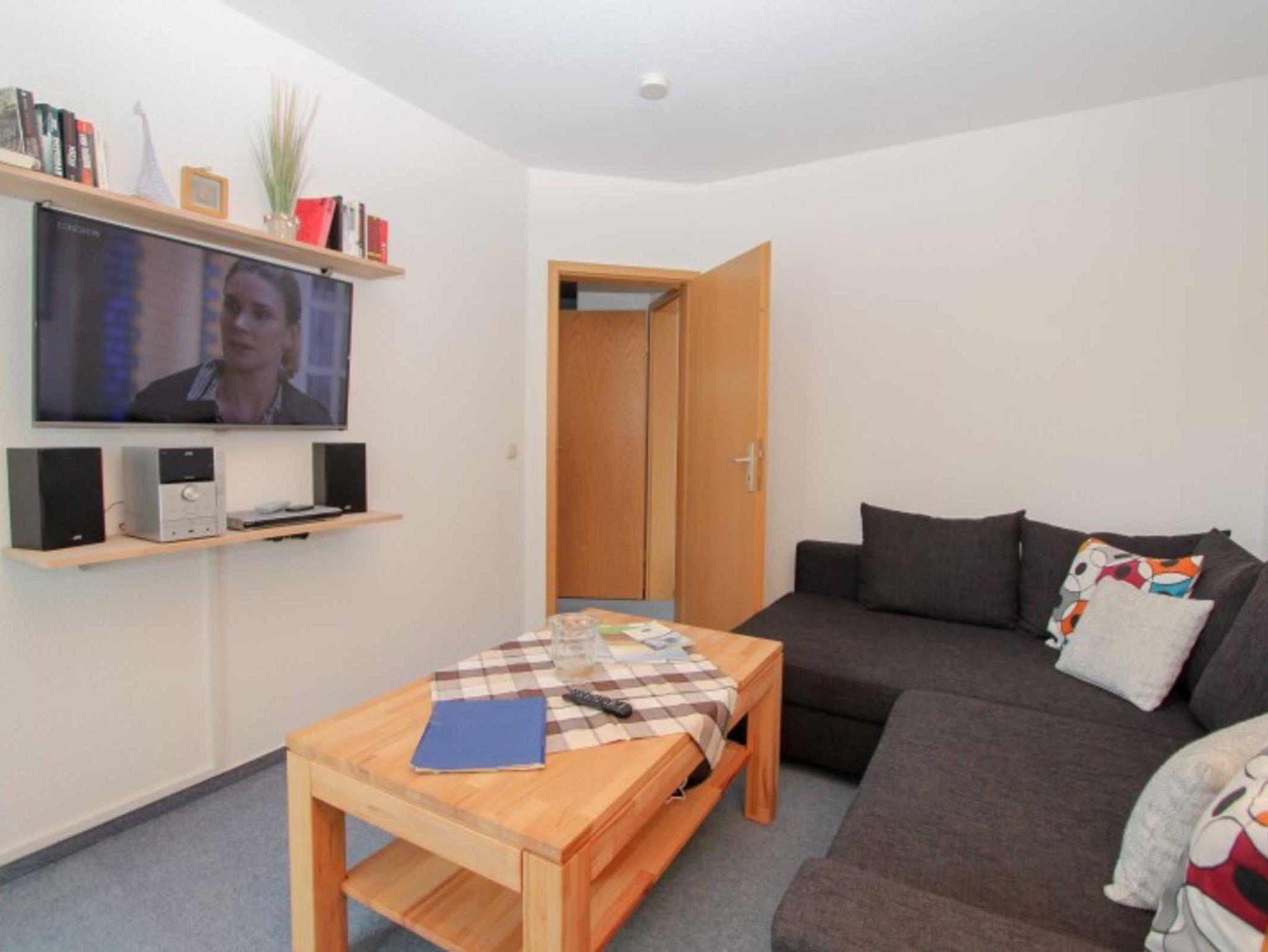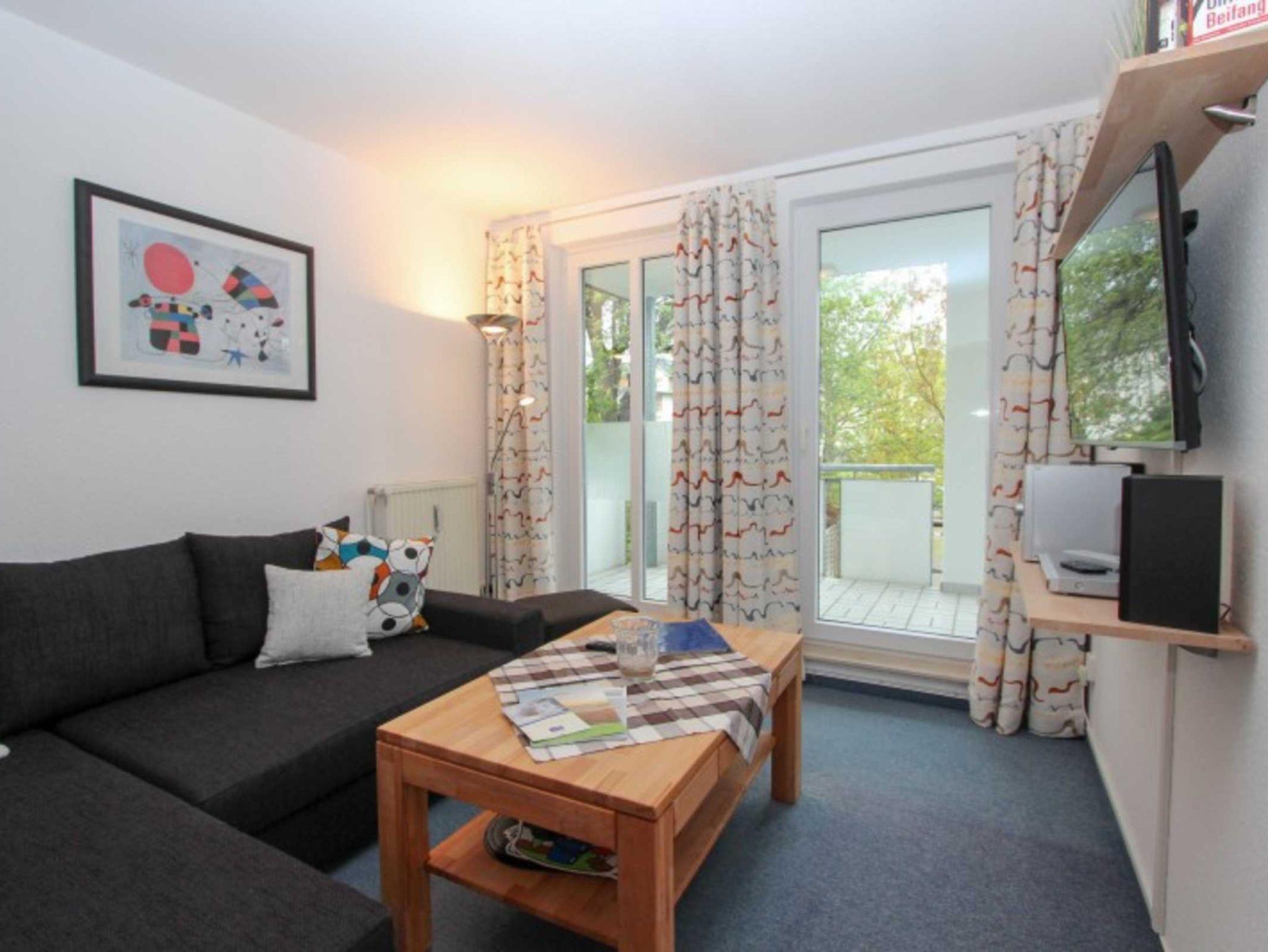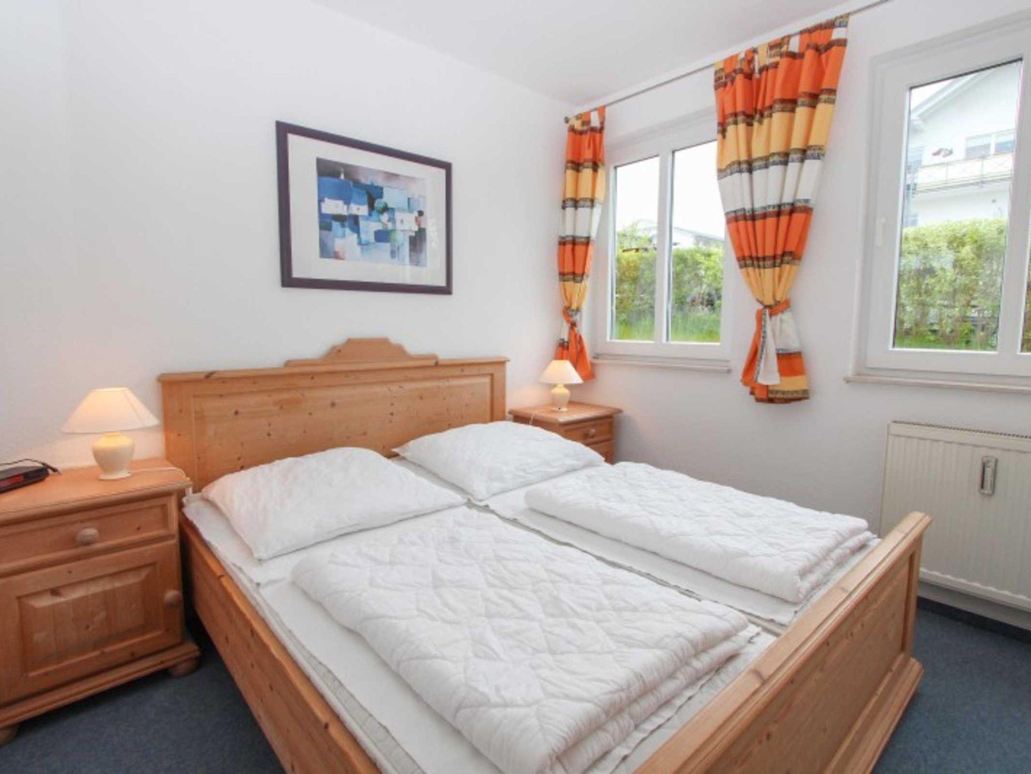 Sie wohnen in einem 2-Zimmer-Appartement für bis zu 4 Personen auf 42 m² im Erdgeschoss. Ein Schlafzimmer mit Doppelbett, Wohn-/Schlafraum mit bequemer Couchgarnitur, separater Essplatz, voll ausgestatteter Küchenzeile mit Geschirrspüler, Dusche/WC, Balkon, SAT-TV. Außenstellplatz für PKW. Zwei Fahrräder stehen zur freien Verfügung bereit.