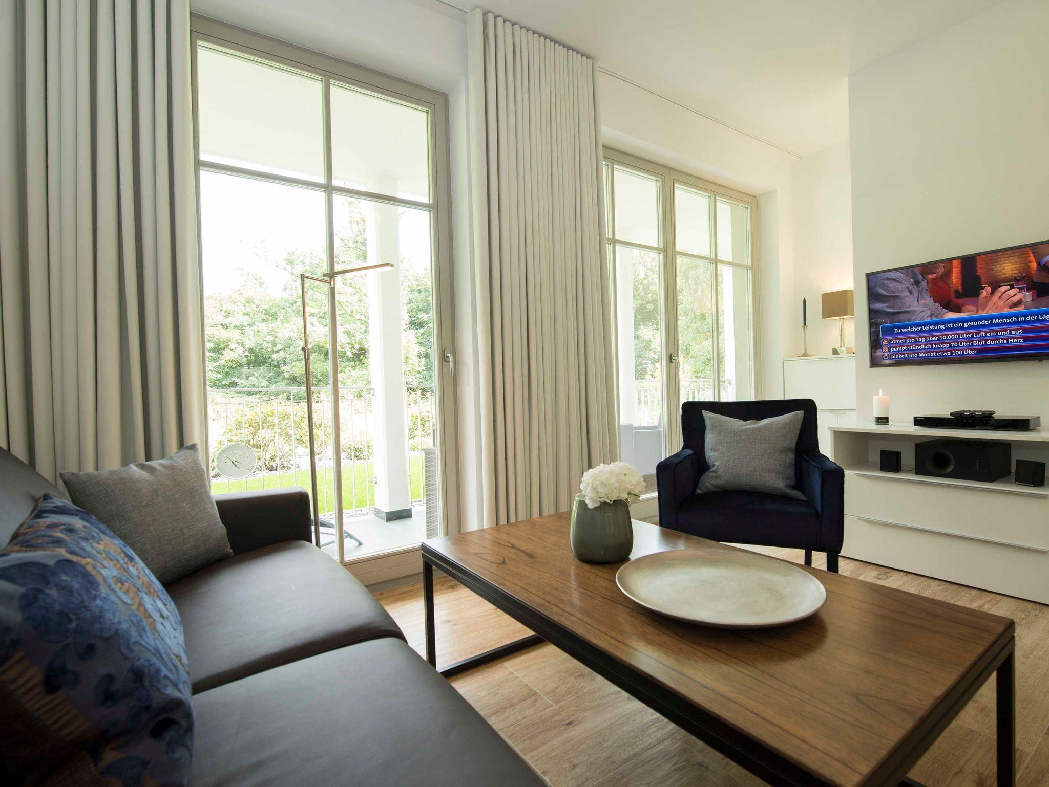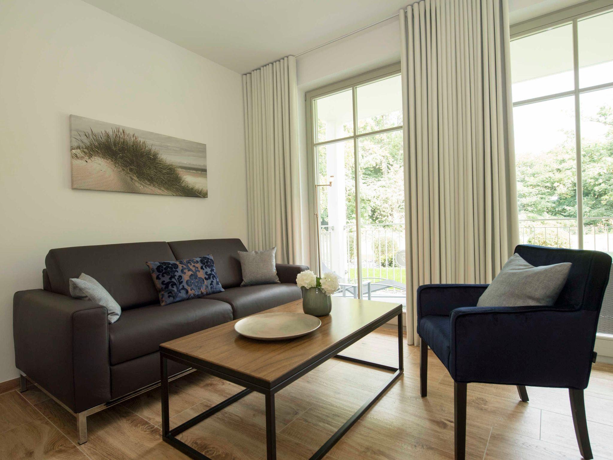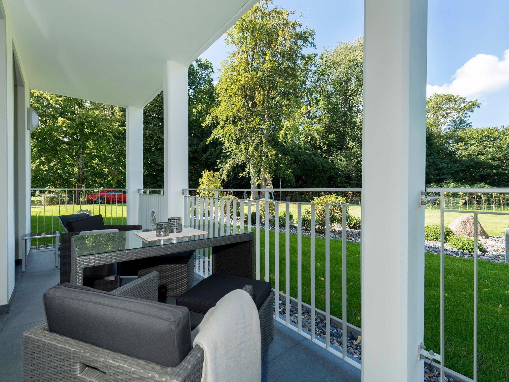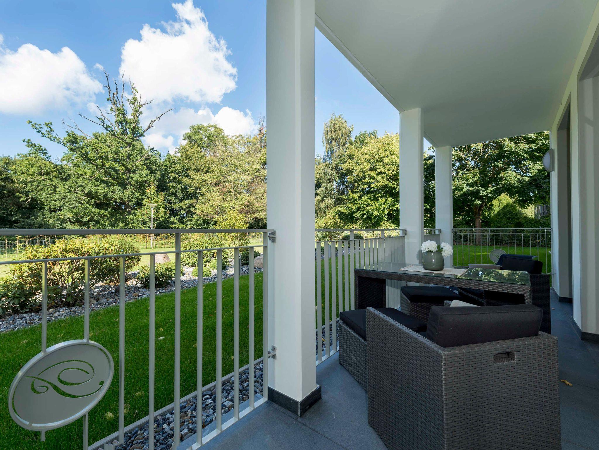 Stilvolle Ferienwohnung mit Balkon, Sauna und Meerblick in Göhren, nahe Sandstrand und Waldpromenade.