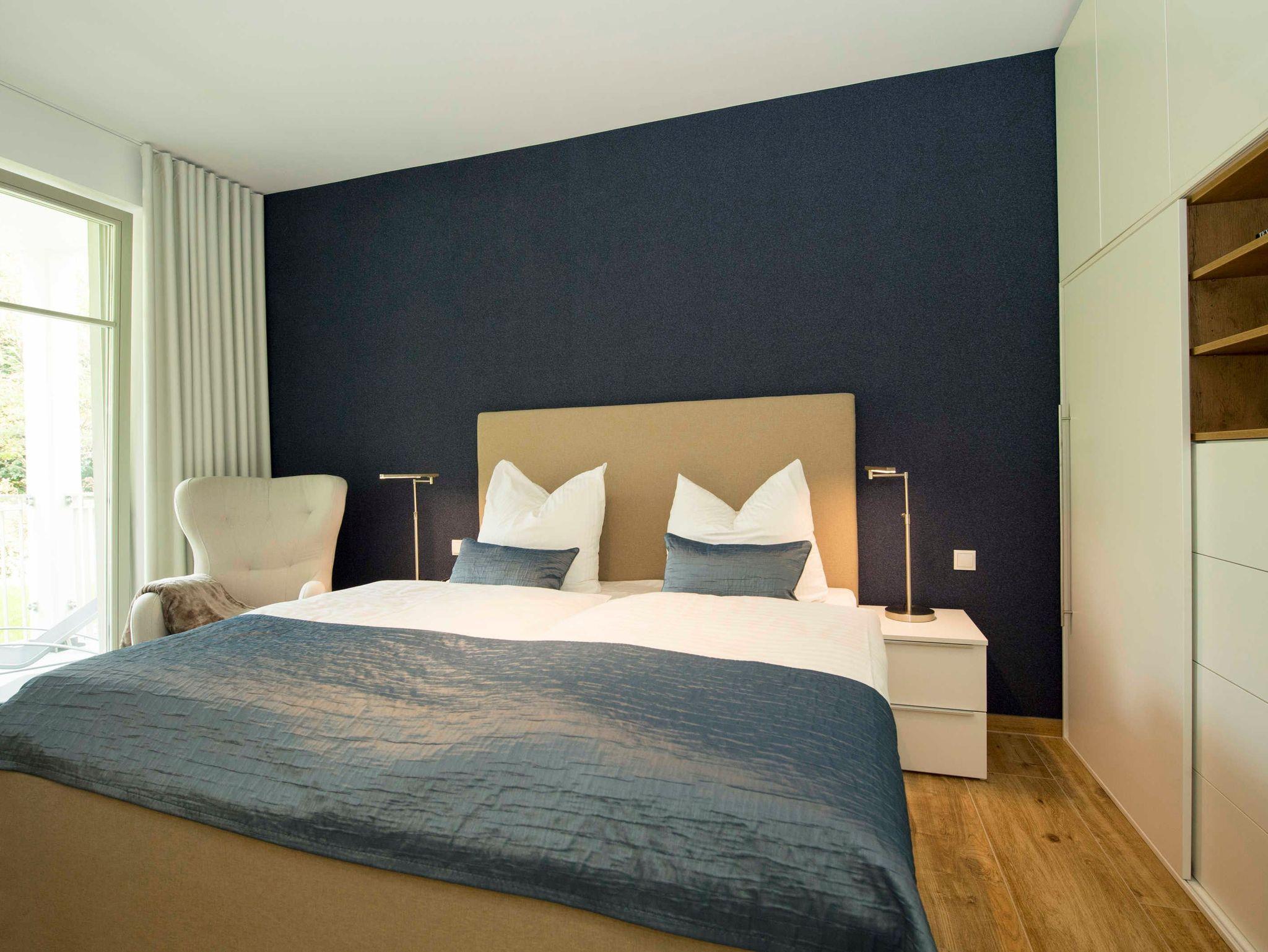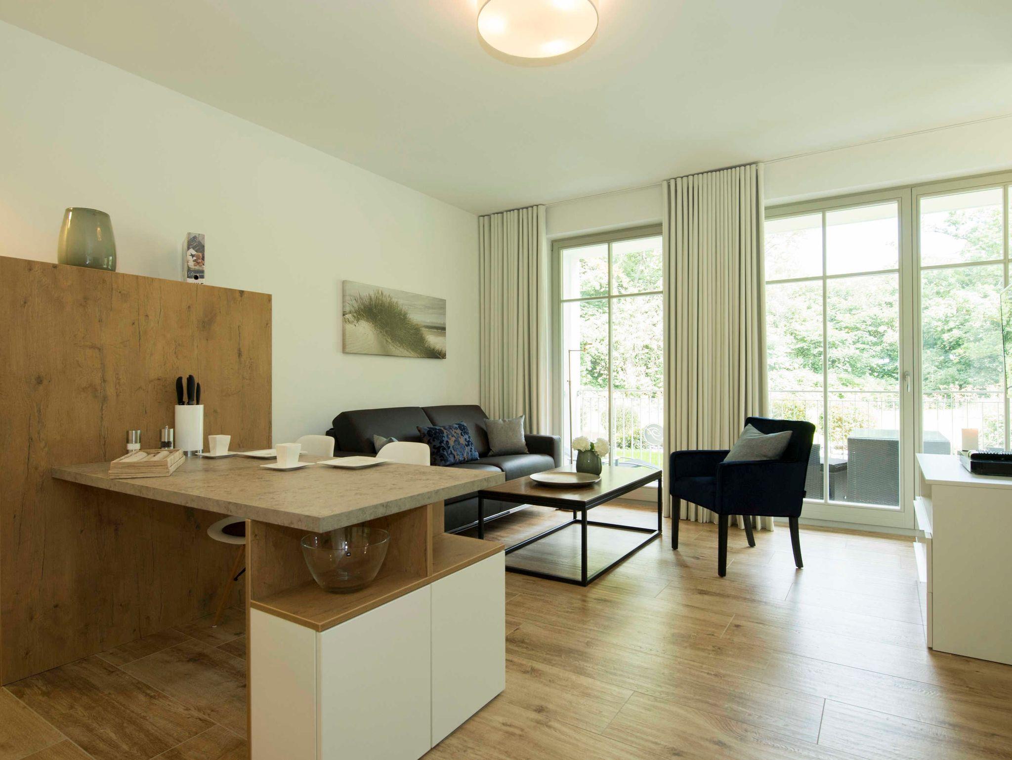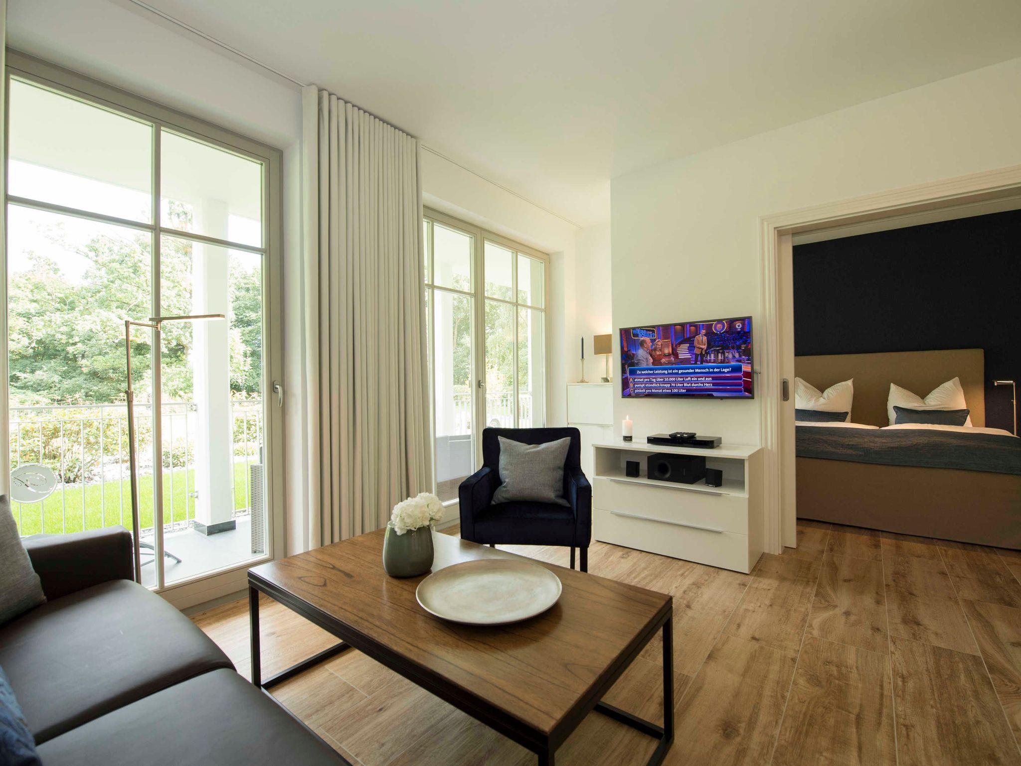 Stilvolle Ferienwohnung mit Balkon, Sauna und Meerblick in Göhren, nahe Sandstrand und Waldpromenade.
