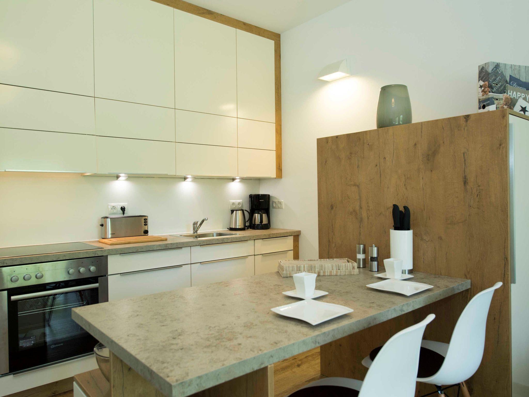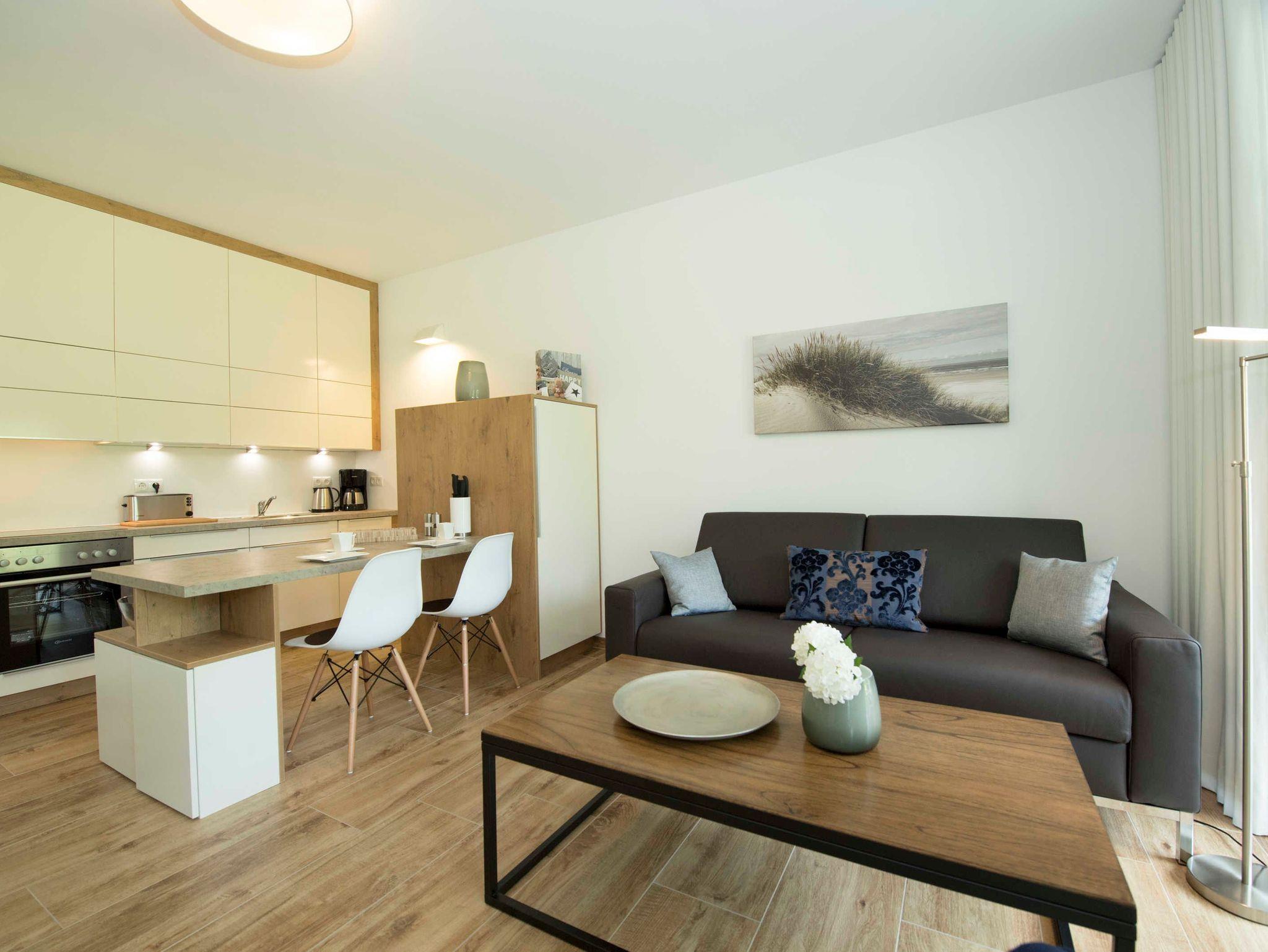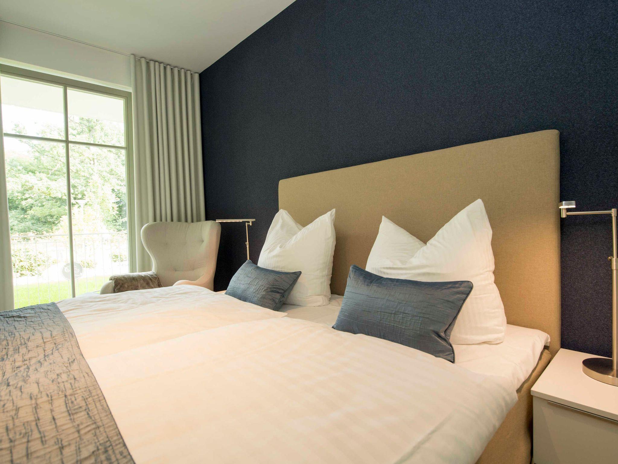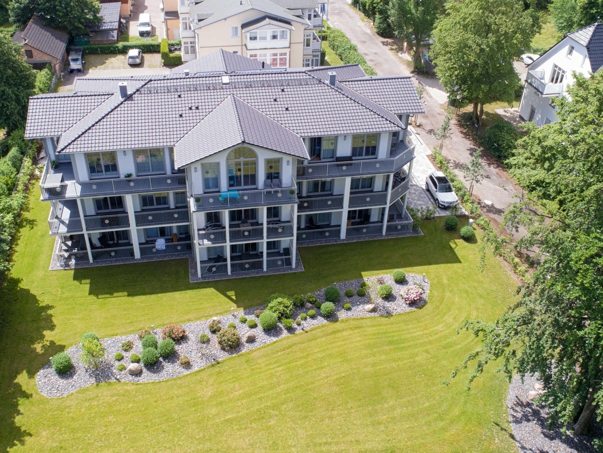 Stilvolle Ferienwohnung mit Balkon, Sauna und Meerblick in Göhren, nahe Sandstrand und Waldpromenade.