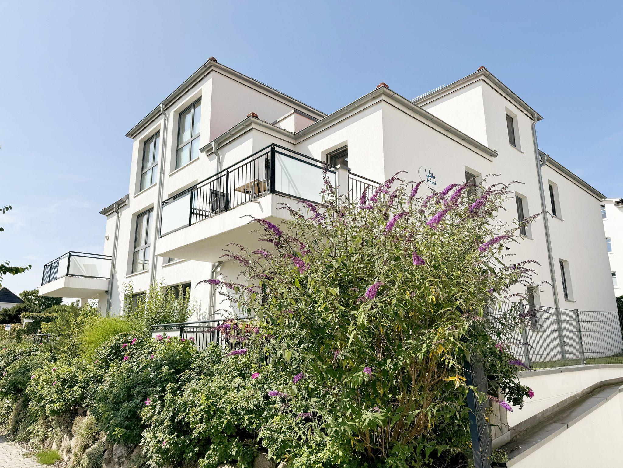 Die Villa Anni befindet sich in einer ruhigen und zentralen Lage im Ostseebad Göhren. Das Haus mit insgesamt 8 Wohneinheiten ist ein moderner Neubau, der sich dank seiner Architektur und Farbgebung stilvoll in die klassische Bäderarchitektur des Ostseebades einfügt. Die Nichtraucherwohnung 4 befindet sich im ersten Obergeschoss und umfasst großzügige 57m². In ca. 7 Gehminuten erreichen Sie den Nordstrand mit der Bernsteinpromenade und dem Kurplatz und in ca. 15 Gehminuten gelangen Sie an den naturbelassenen Südstrand. Das Zentrum des Kurortes mit vielfältigen Einkaufsmöglichkeiten (u.a. zwei Supermärkten) und diversen gastronomischen Einrichtungen befindet sich in unmittelbarer Umgebung (Entfernung ca. 200 m).