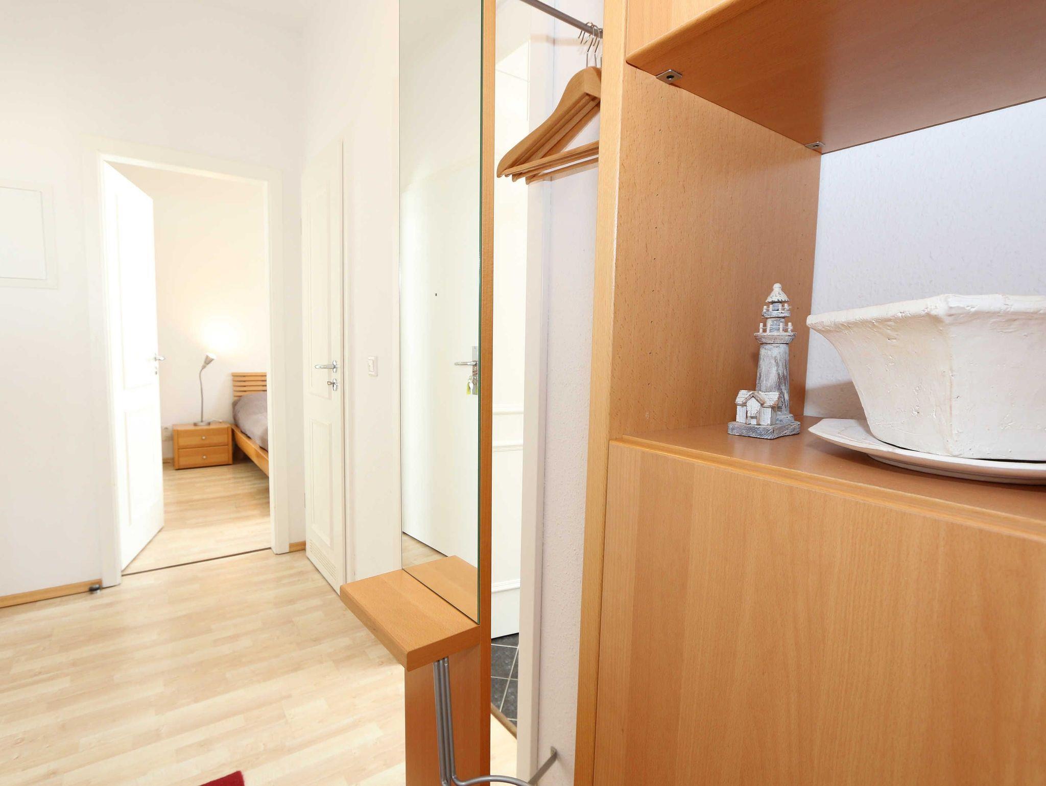 Die liebevoll eingerichtete 2- Raumferienwohnung ist eine Nichtraucherwohnung und bietet ausreichend Platz für 2 bis 4 Personen. Die Wohnfläche umfasst ca. 45 m². Der kombinierte Wohn- Essbereich ist mit einer komplett ausgestatteten Küchenzeile versehen, die über einen Geschirrspüler, Kühlschrank mit Eisfach, Cerankochfeld, Backofen, Kaffeemaschine, Toaster, Wasserkocher, diversen Küchenutensilien sowie einen Esstisch mit 4 Stühlen verfügt. Angrenzend bietet Ihnen der Wohnbereich eine Couchecke (Aufbettung für 3./4. Person 1,50m x 2,00m) mit Sessel, Couchtisch, Leselampe sowie eine Anrichte mit Smart-TV (81 cm Diagonale), Video/Blu-Ray-Player und DAB-Radio. Vom Wohnbereich aus gelangen Sie auf den ca. 10 m² bestuhlten und überdachten Balkon. Von hier aus haben Sie Blick auf die Ostsee, wo Sie Ihren Tag bei einem Glas Wein ausklingen lassen können. Das Tageslichtbad erreichen Sie durch den Flur wo eine Dusche, Kosmetikspiegel, Fön, WC und ein Waschtisch das Ganze abrunden. Das separate Schlafzimmer ist mit einem Doppelbett (1,80m x 2,00m), Nachtischkonsolen und Kleiderschrank ausgestattet. Ein kleiner Abstellraum steht Ihnen zusätzlich in der Wohnung zur Verfügung wo Sie auch ein Bügelbrett/Bügeleisen vorfinden. Die Räumlichkeiten sind mit Fliesen und Laminat verlegt worden. Ein WLAN-Zugang ist für Sie Inklusive. Ein PKW-Stellplatz (Nr.08) ist für Sie vorhanden sowie eine Fahrradunterstellmöglichkeit im Keller. Im Nebengebäude können Sie eine Waschmaschine und einen Trockner gegen eine Extragebühr nutzen. Die Erstausstattung eines Wäschepaketes (komplette Bettwäsche, 1 Duschhandtuch, 2 kleine Handtücher, 2 Geschirrhandtücher) können Sie bis 14 Tage vor Anreise gegen einen Aufpreis dazu buchen oder durch eigene ergänzen.