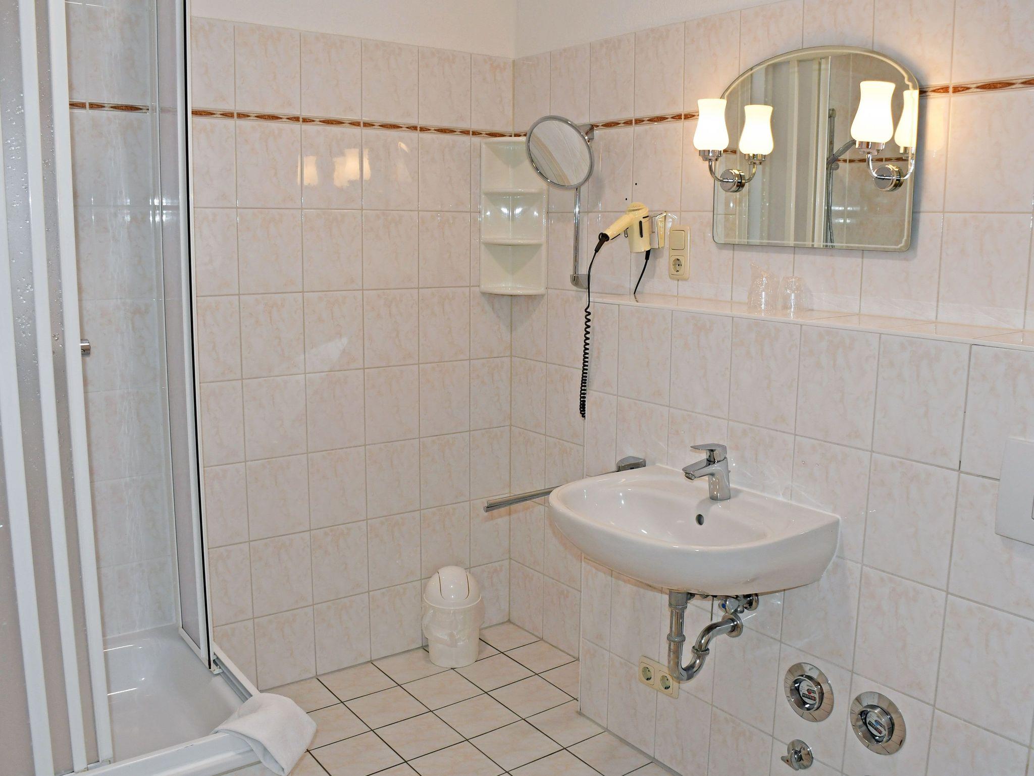 Bad mit Dusche, WC und Föhn