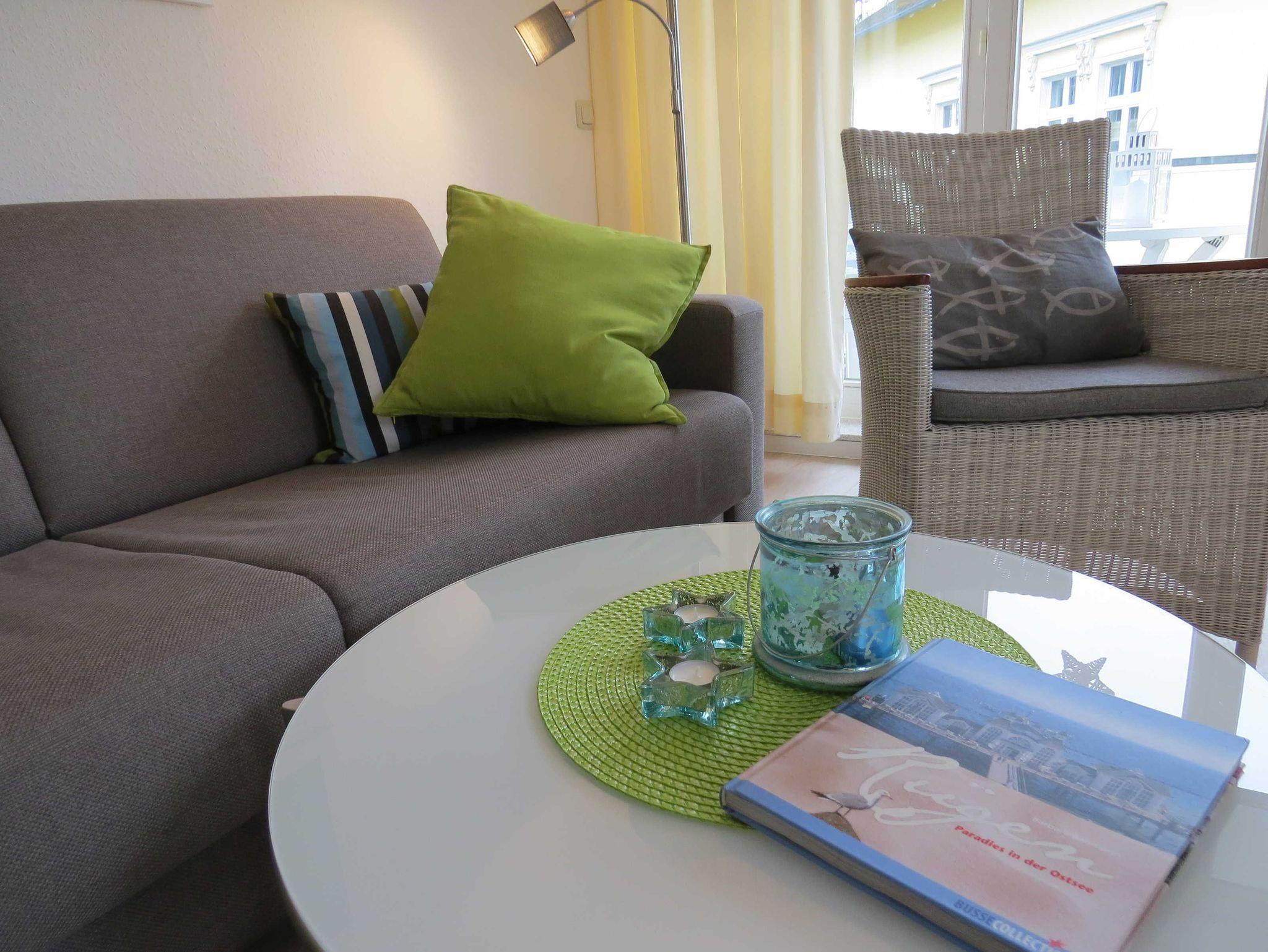 Das helle, sonnige, modern und geschmackvoll eingerichtete Zweizimmer-Nichtraucher-Appartement in der ersten Etage der Villa Granitz verfügt über eine große Fensterfront mit davor liegendem Ost-Balkon.