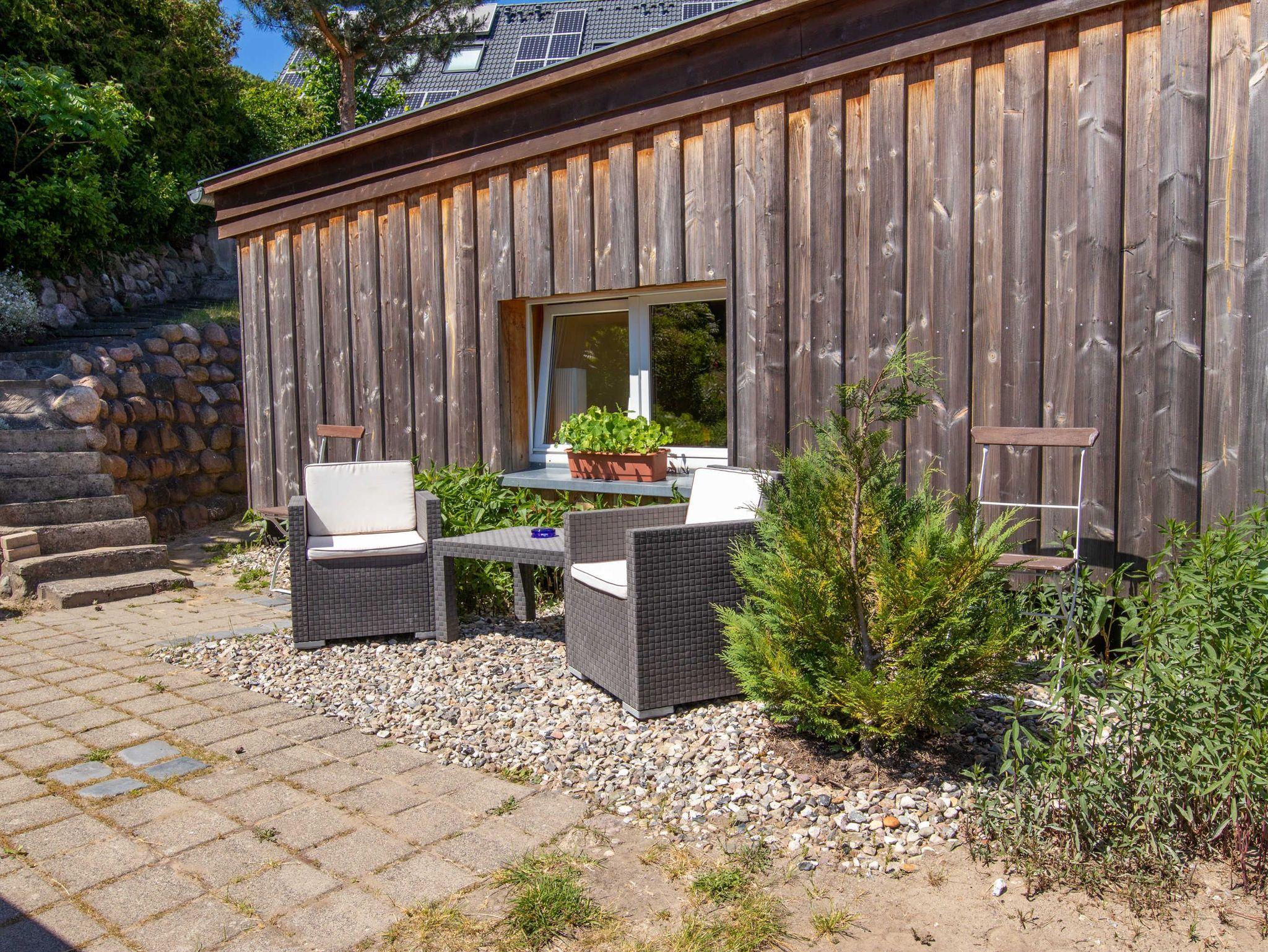 Auf dem Hinterhof befindet sich die 30m² Ferienwohnung Sanddorn mit Platz für 2 Personen.