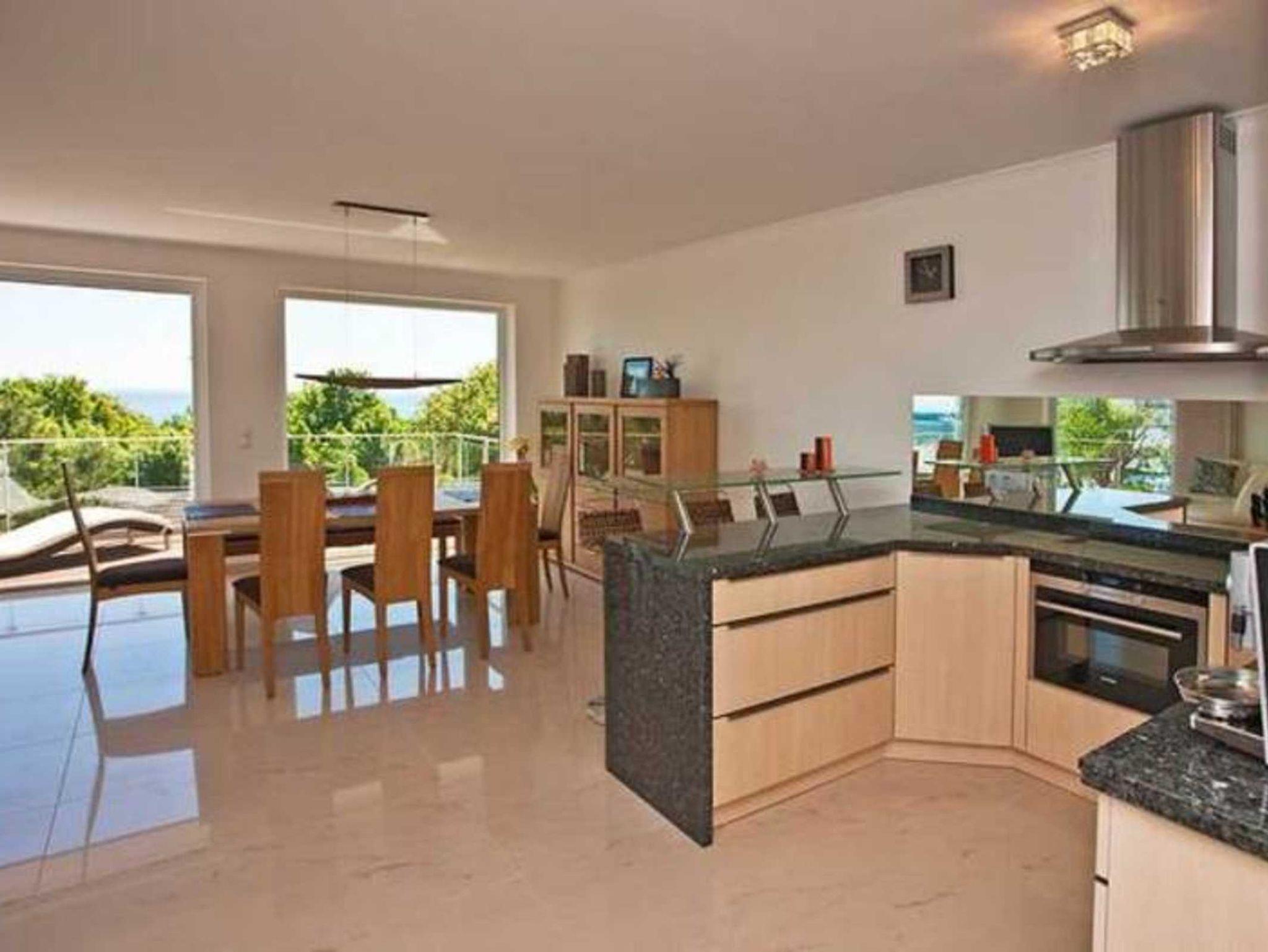 Ein großzügiger Essplatz aus massiven Eichenholzmöbeln und die offene Küche, die unter anderem mit einer Arbeitsplatte aus Granit, Bar-Tresen, Cerankochfeld, Backofen, Mikrowelle, Spülmaschine, Kaffeevollautomat, Wasserkocher und Toaster erstklassig ausgestattet ist, vollenden das Wohlbefinden in unserem Beletage Appartement.