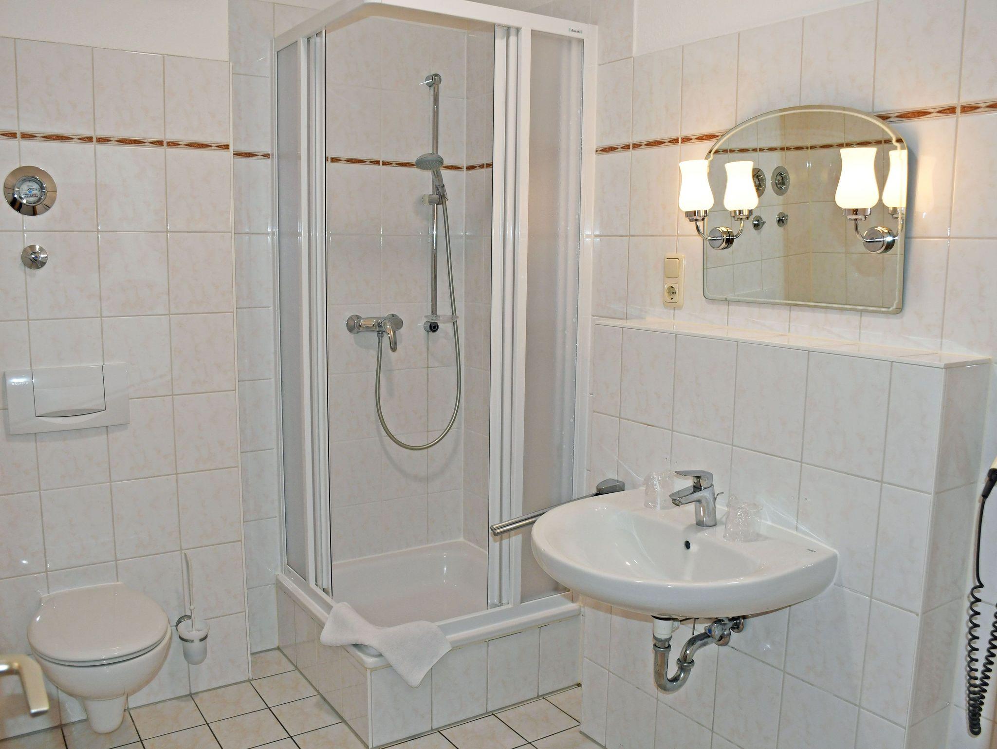 Bad mit Dusche, WC und Föhn