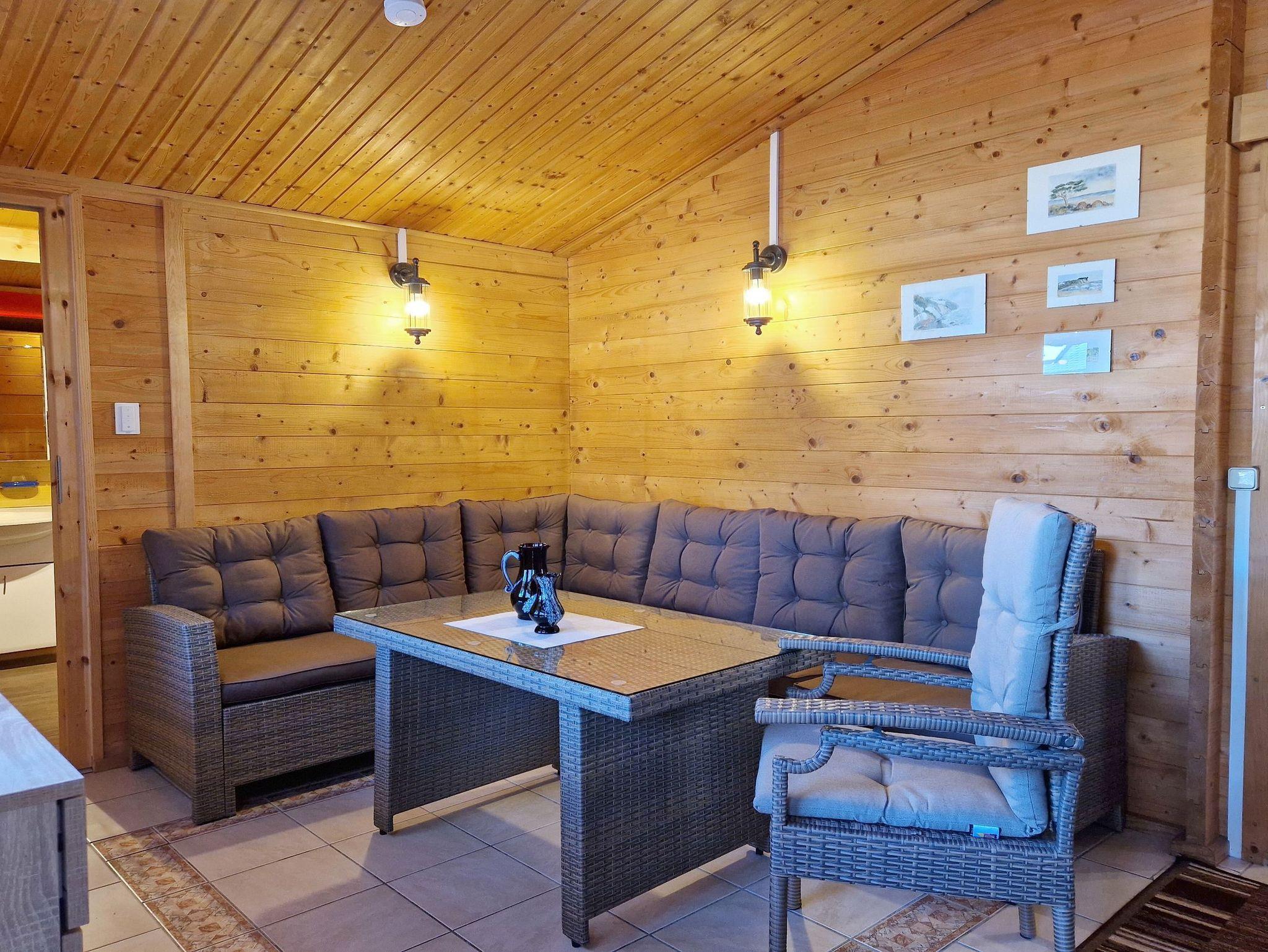 Gemütlicher Bungalow Regenbogen direkt am Strand von Göhren mit Terrasse und moderner Ausstattung.