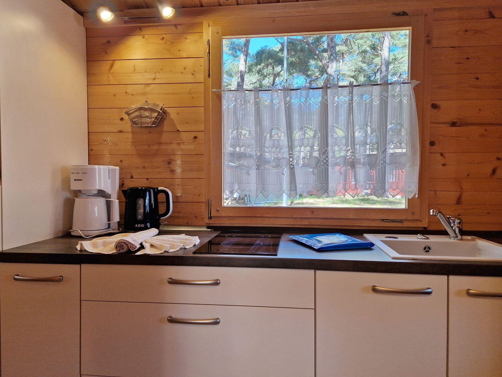 In der Küche findenn Sie einen 2 Felder Ceranherd, Backofen, Kühlschrank mit Gefrierfach, Kaffeemaschine, Toaster, Wasserkocher und reichlich Küchenutensilien.
