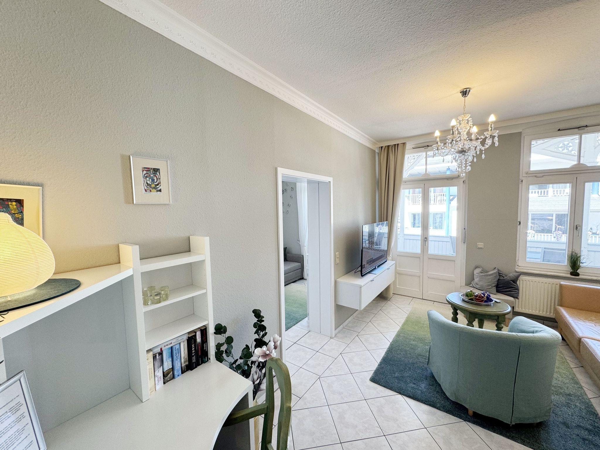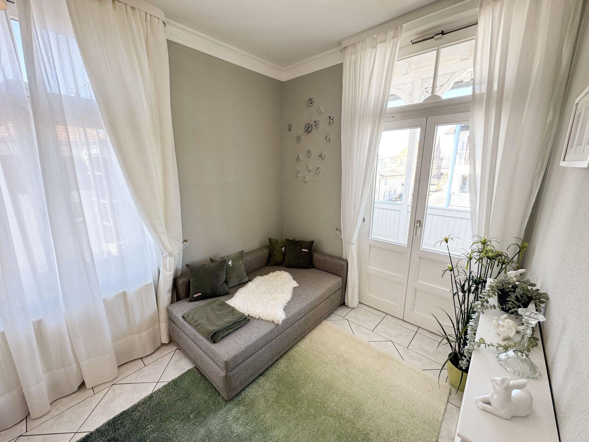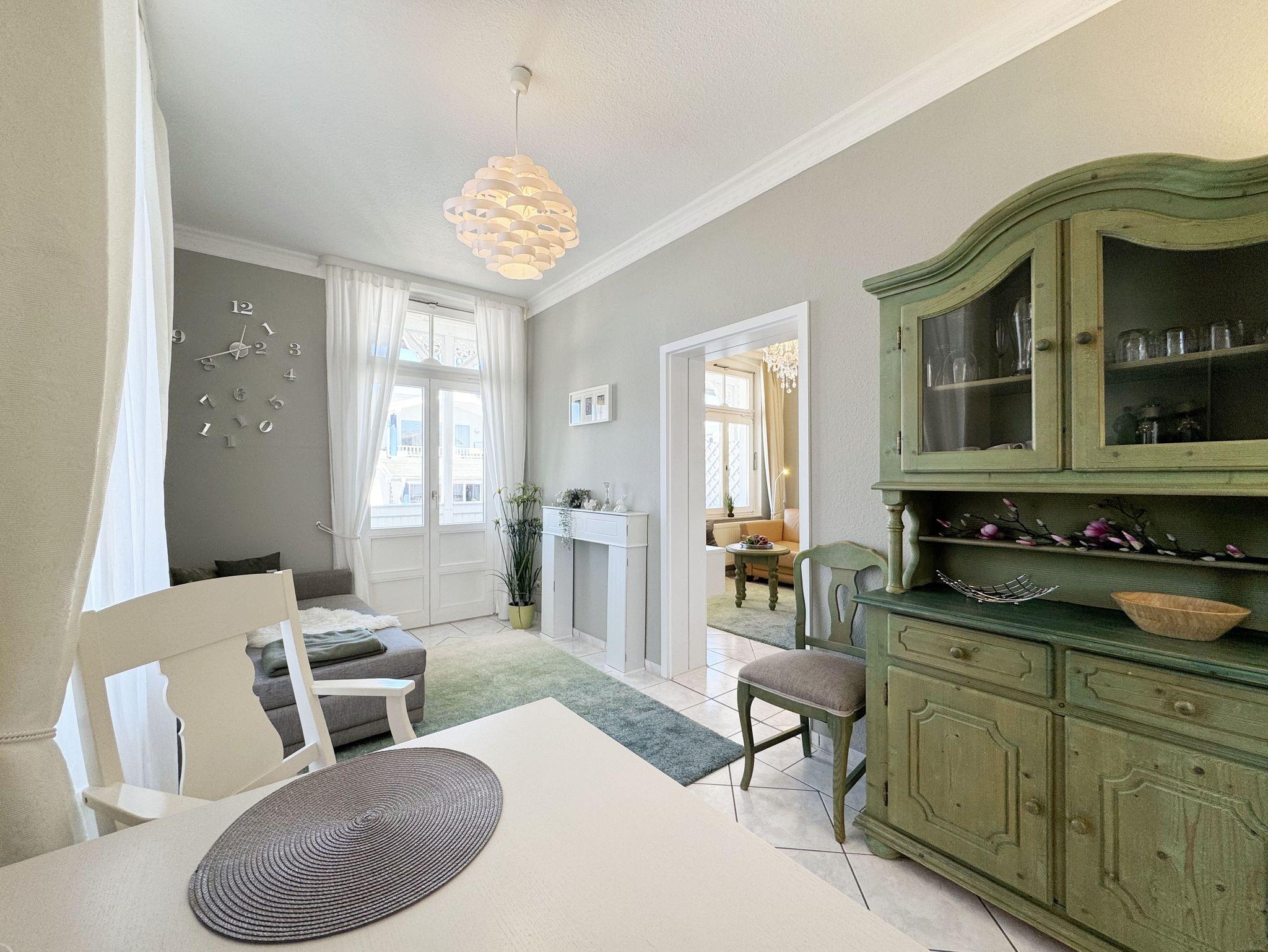 Gemütliche Ferienwohnung mit Balkon in der denkmalgeschützten Villa Minna im Ostseebad Göhren, nahe Strand und Zentrum.