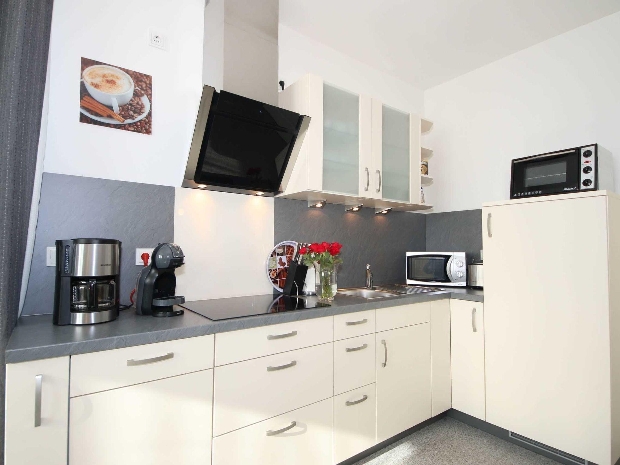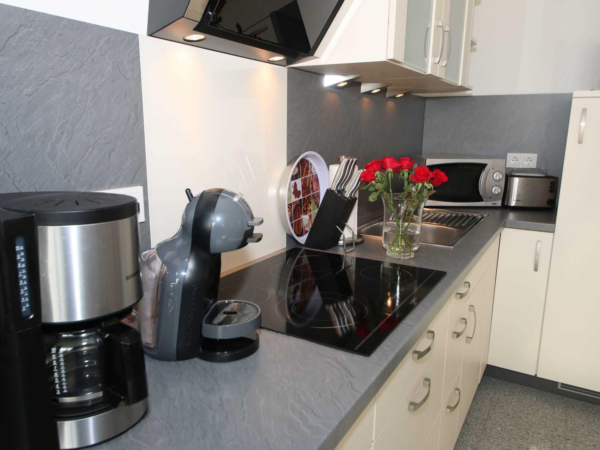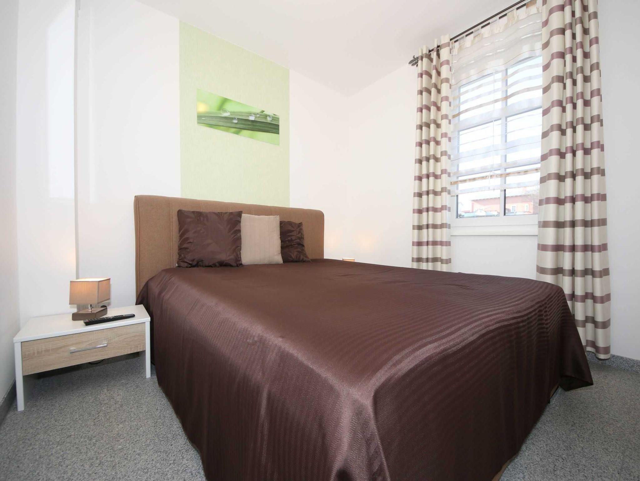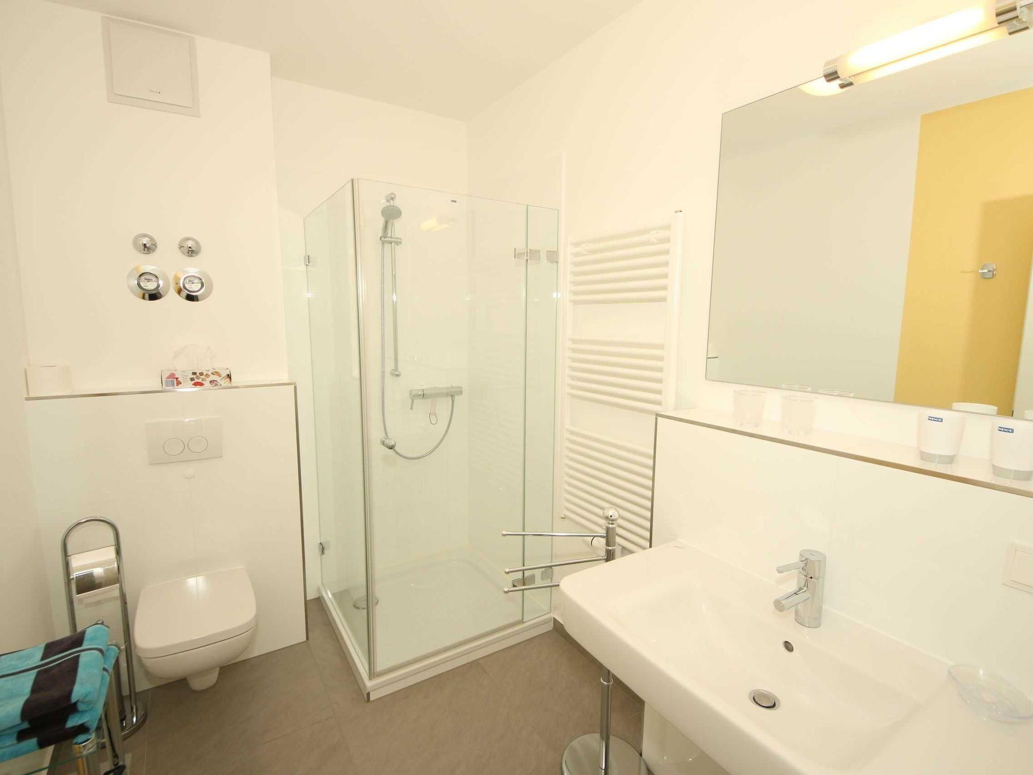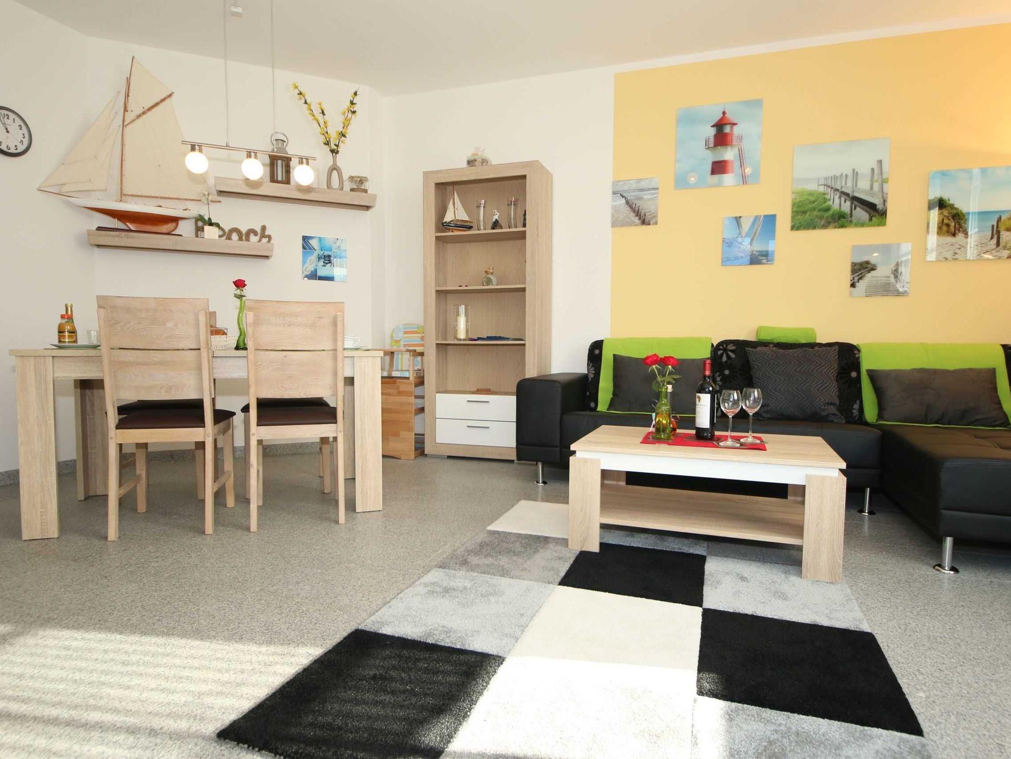 Die mit 60 qm komfortable und modern eingerichtete Nichtraucherwohnung verfügt über einen Granit Fußboden sowie Fußbodenheizung und befindet sich in der 1. Etage. Die Wohnung erreichen Sie bequem durch den Aufzug von der hauseigenen Tiefgarage. Die Wohnung verfügt über einen Balkon mit Südwestausrichtung und gemütlicher Bestuhlung (Sessel und Tisch). Im Wohnbereich lädt eine Sitzlandschaft mit Leselampe zum Verweilen ein. Ein Smart-TV, Blu-Ray-/DVD-Player, Sound-Anlage mit DAB-Radio und WLAN (inklusive) sorgen für einen angenehmen Aufenthalt. Die offene Küchenzeile verfügt über ein hochwertiges Ceranfeld, mit Abzugshaube, separatem Backofen, Mikrowelle mit Grillfunktion, Geschirrspüler, Kaffeemaschine, Kapselmaschine (Dolce Gusto), Wasserkocher, Toaster und natürlich diversen Küchenutensilien. Der Essplatz für 4 Personen mit Ausziehtisch rundet das Bild ab. Die beiden Schlafzimmer sind mit Boxspringbetten (1,60 m x 2,00 m & 1,80 m x 2,00 m) ausgestattet. Ebenfalls verfügen beide über 1 Full-HD-Flachbildschirm, einem stillen Diener, zwei Nachtkonsolen, Insektenschutzgitter und einem Kleiderschrank. Das moderne Duschbad mit WC verfügt über eine beheizte Handtuchhalterung, einen Kosmetikspiegel und einen Fön. Für unsere kleinen Gäste ist 1x Hochstuhl inklusive. Der Tiefgaragenstellplatz Nr. 7, Einfahrtshöhe 2 Meter, steht Ihnen kostenfrei zur Verfügung. Im Objekt befindet sich ein Fahrradraum in dem geliehene oder mitgebrachte Fahrräder sicher abgestellt werden können. Gegen Gebühr können Sie eine Waschmaschine und einen Trockner im Haus nutzen. Zusätzlich befinden sich in der Ferienwohnung ein Wäscheständer, Bügelbrett und Bügeleisen. Keine Haustiere erlaubt!! (Menschen mit Tierhaarallergie vor Buchung der Wohnung Kontakt mit dem Vermieter aufnehmen). Die Erstausstattung eines Wäschepaketes (komplette Bettwäsche, 1 Duschhandtuch, 2 kleine Handtücher, 2 Geschirrhandtücher) können Sie bis 14 Tage vor Anreise gegen einen Aufpreis dazu buchen oder durch eigene ergänzen.