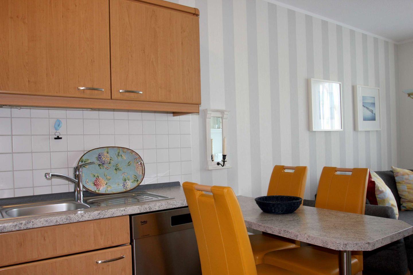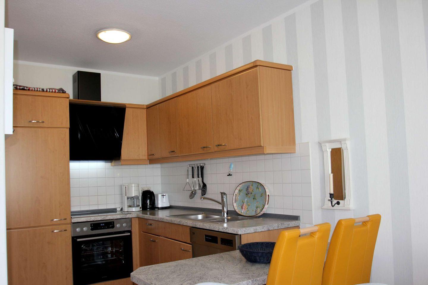 KÜCHE // offene Küche, 4-Platten Ceranherd, Spülmaschine, Kühlschrank mit Gefrierfach, Backofen, Toaster, Wasserkocher, Kaffeemaschine, reichlich Besteck, Geschirr und Küchenutensilien ++