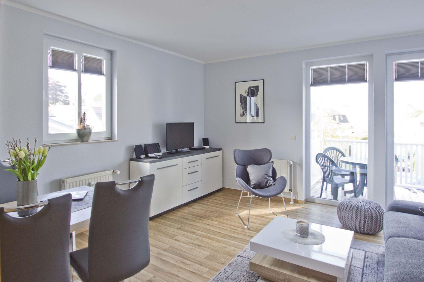Charmante 2-Raum-Ferienwohnung mit Balkon nahe Strand und kostenfreiem Zugang zum AHOI Erlebnisbad in Göhren.