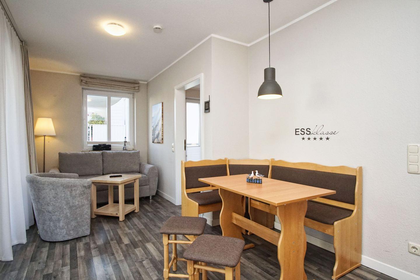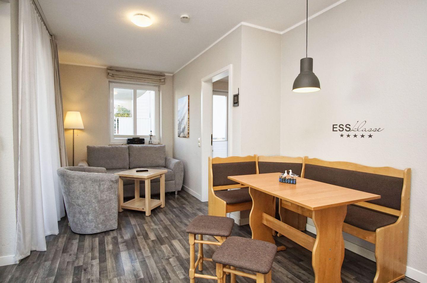 WOHNEN // Wohnraum mit Essbereich, Sitzgarnitur mit bequemer Schlafcouch, Flachbild-TV ++