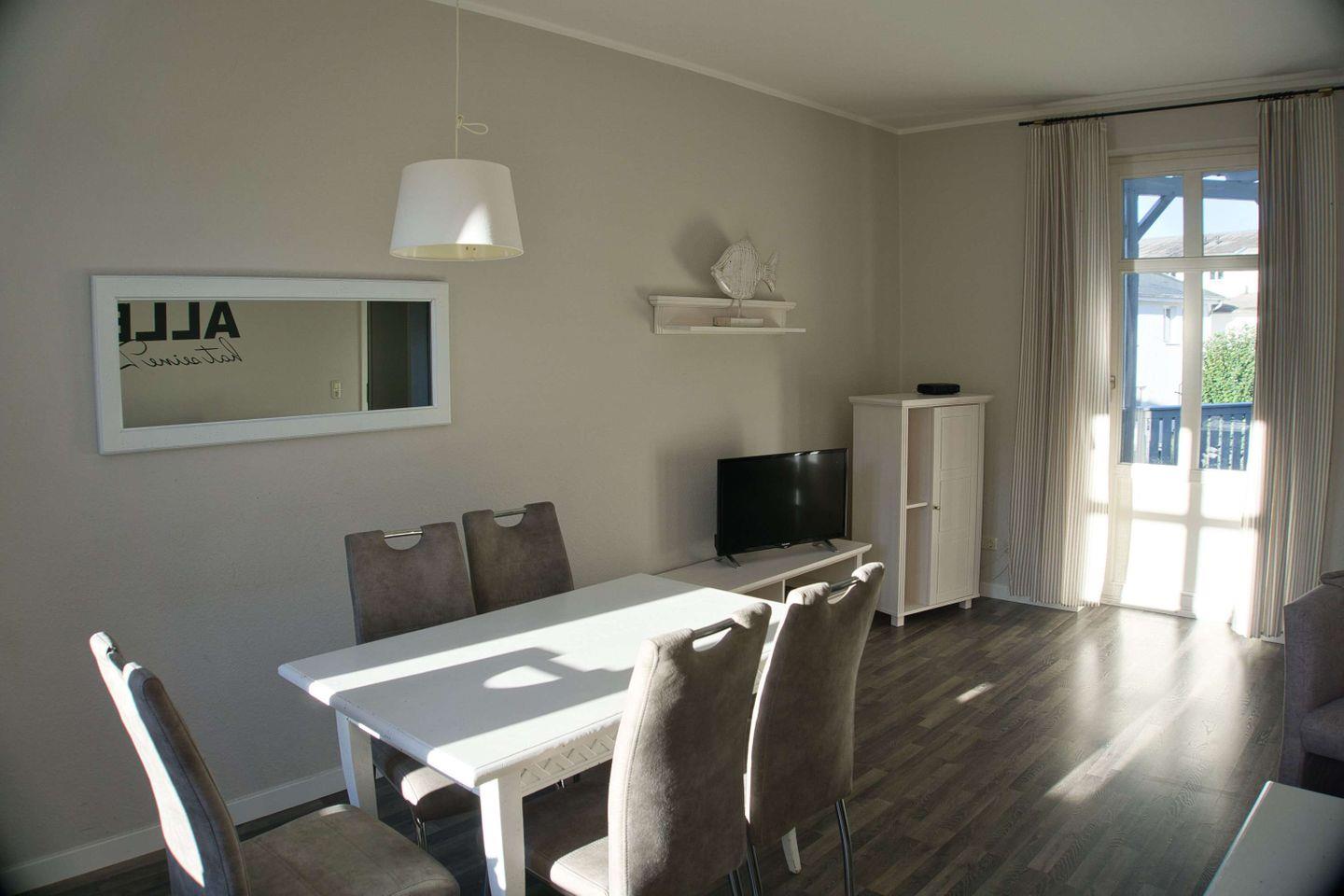 Moderne Ferienwohnung in Göhren mit Balkon, Strandnähe und kostenfreiem Zugang zum Erlebnisbad und Sauna.