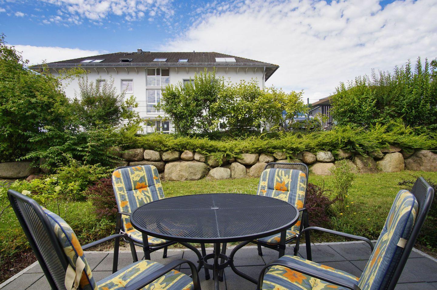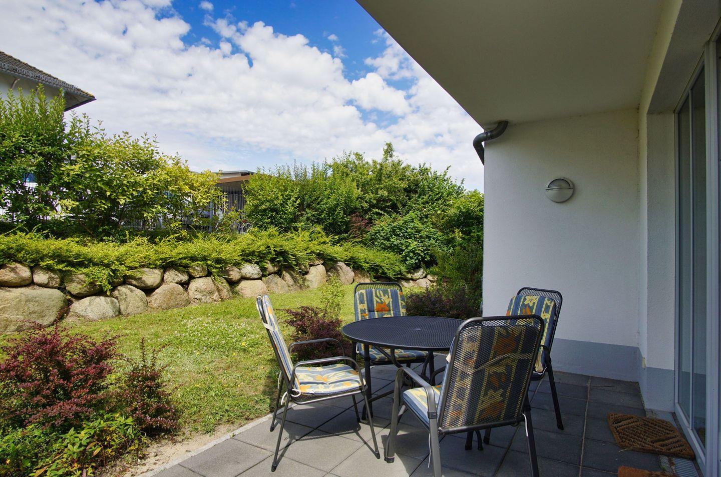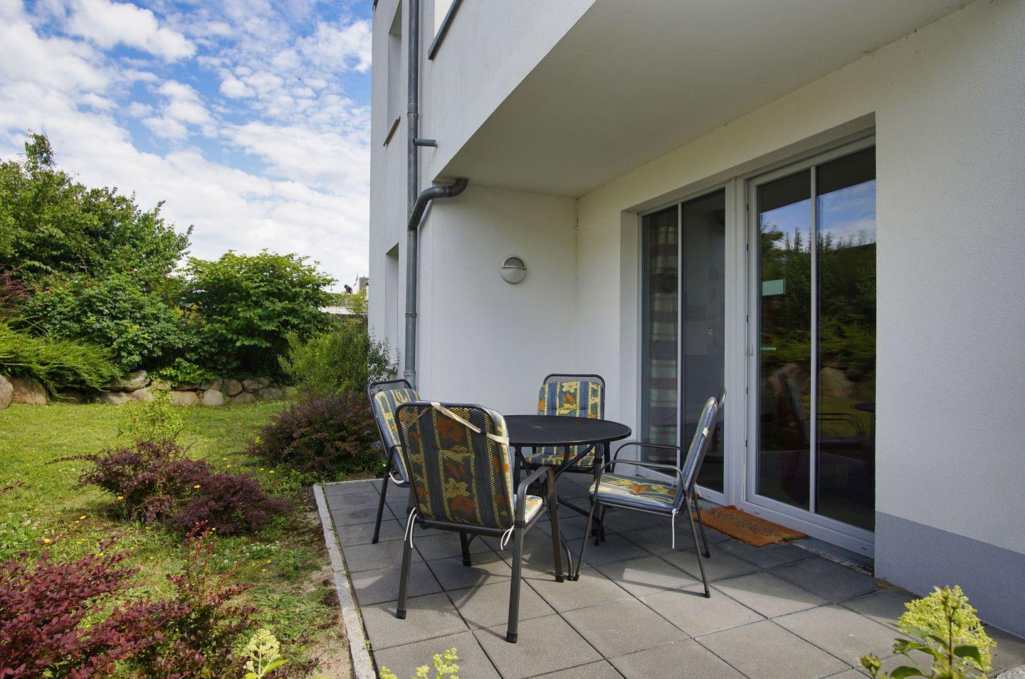 Terrasse, gratis Nutzung vom AHOI Erlebnisbad und Sauna - Villa Antje FeWo 04