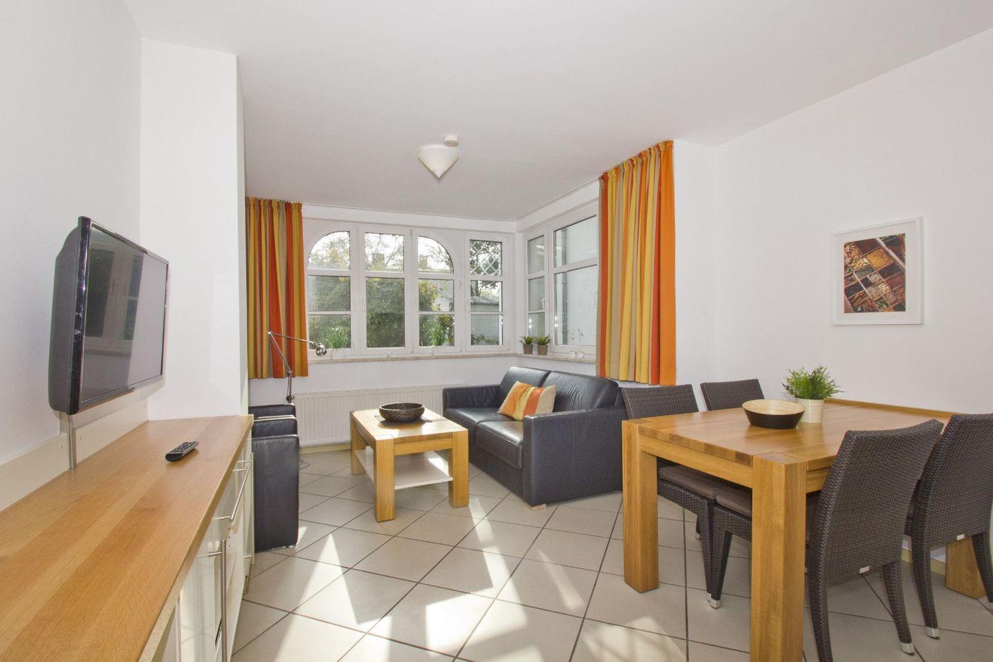 Modern eingerichtete Ferienwohnung mit Meerblick, Pool- und Saunanutzung nahe dem Ostseestrand in Göhren.