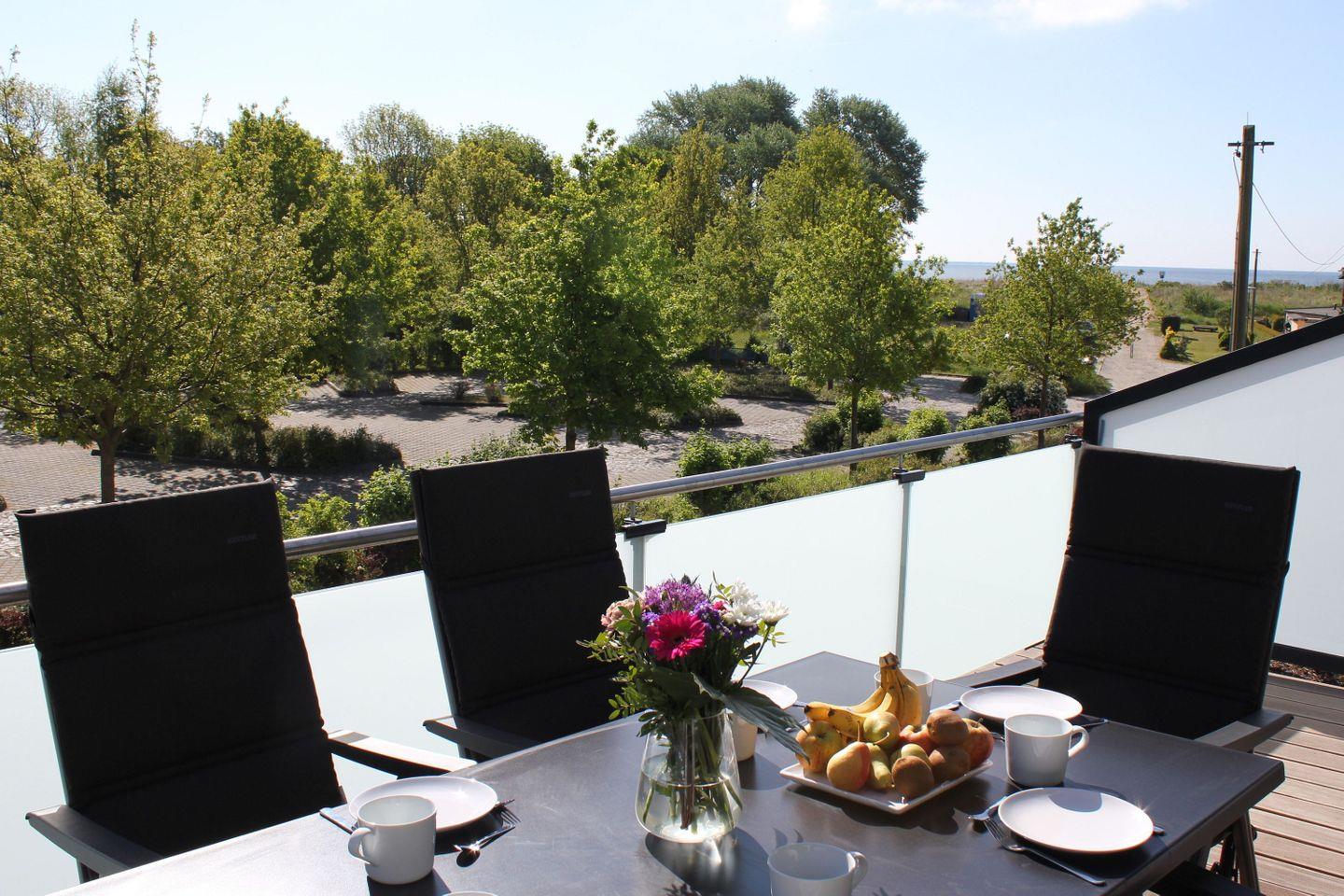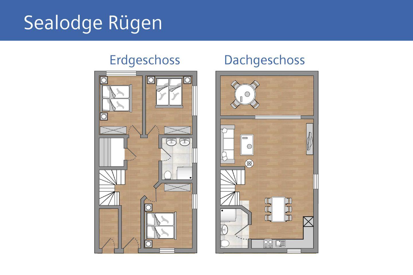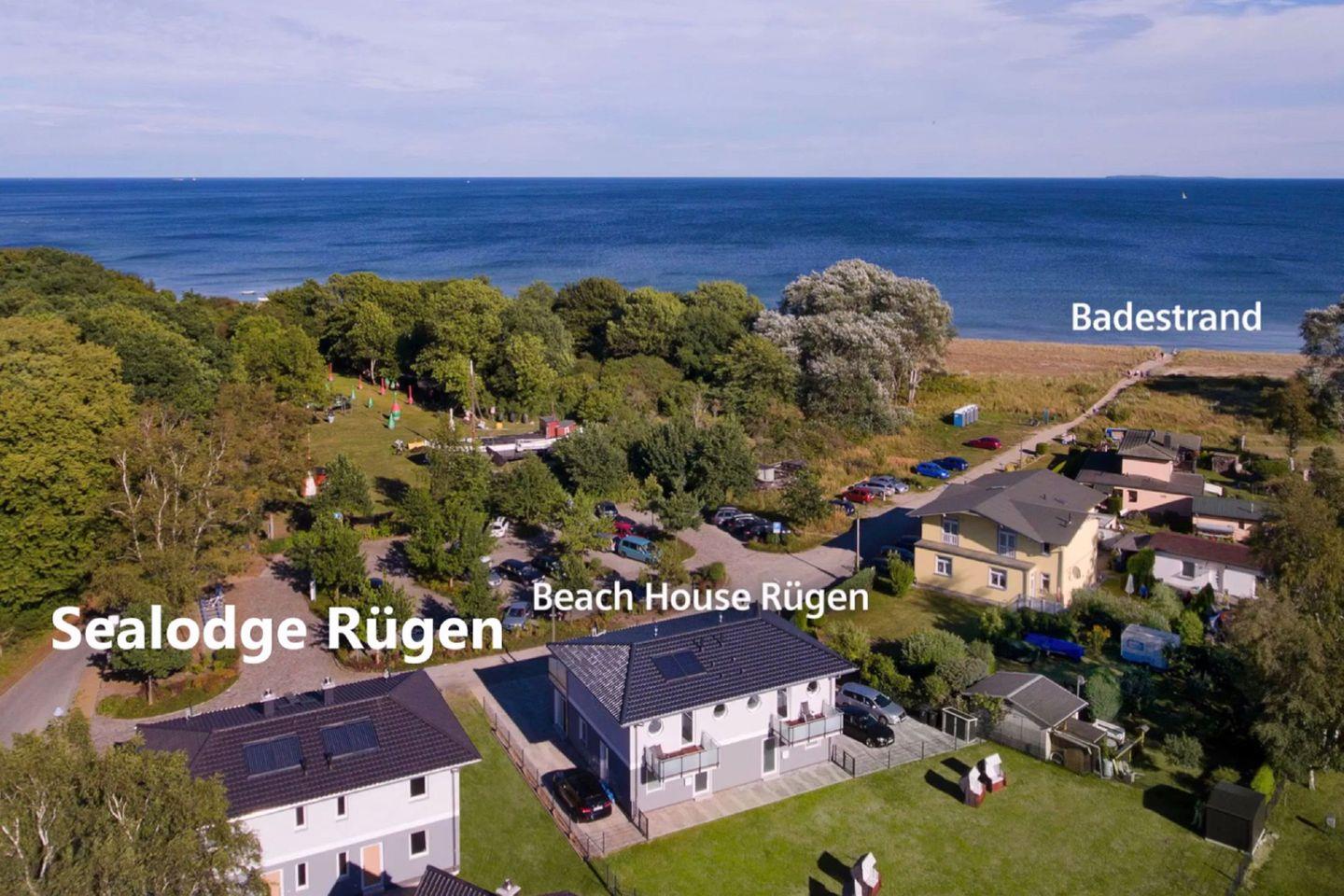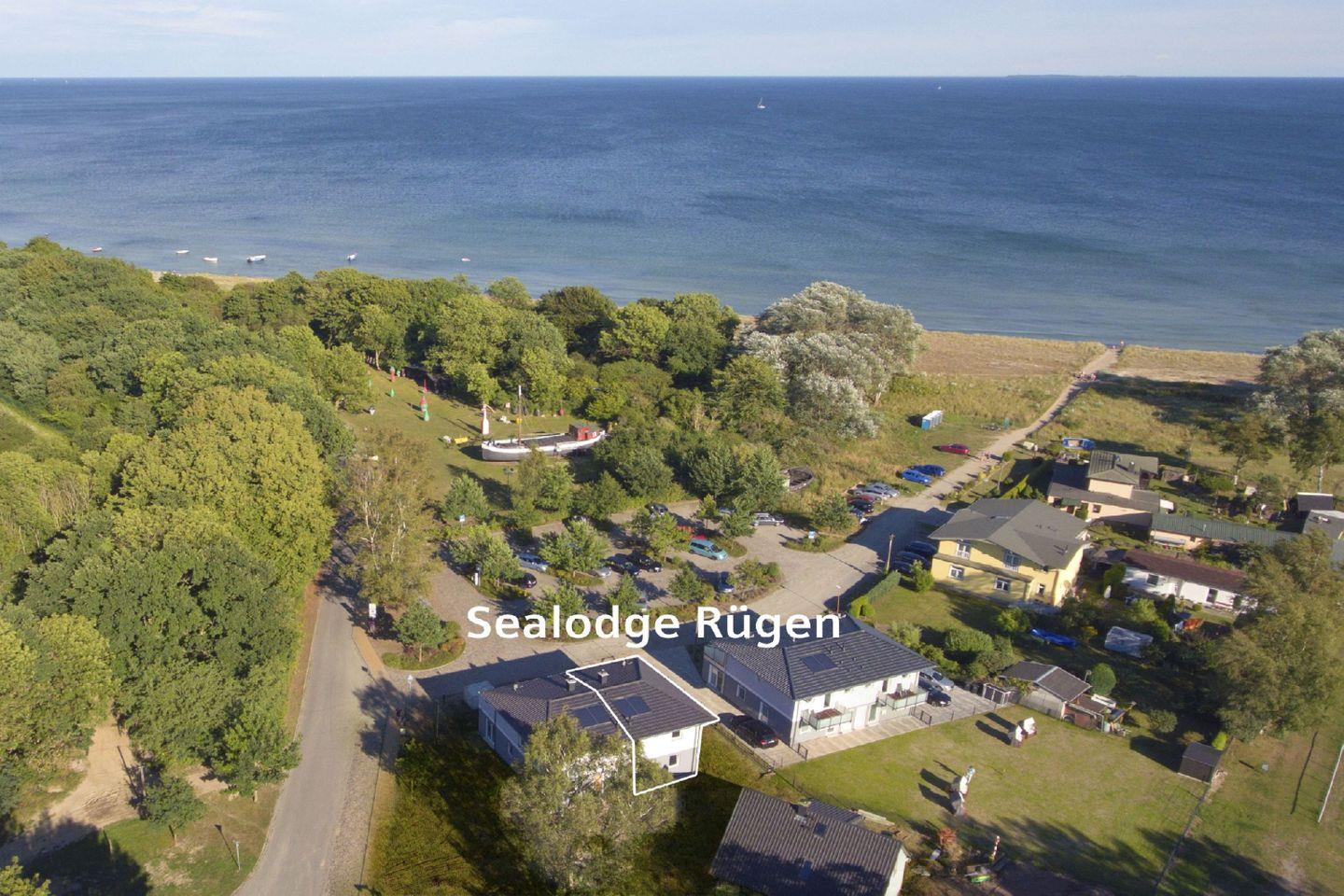 Strandnahes Ferienhaus Sealodge Rügen mit Sauna, Meerblick, Garten, Balkon und kostenfreiem Zugang zu Schwimmbad und Sauna.