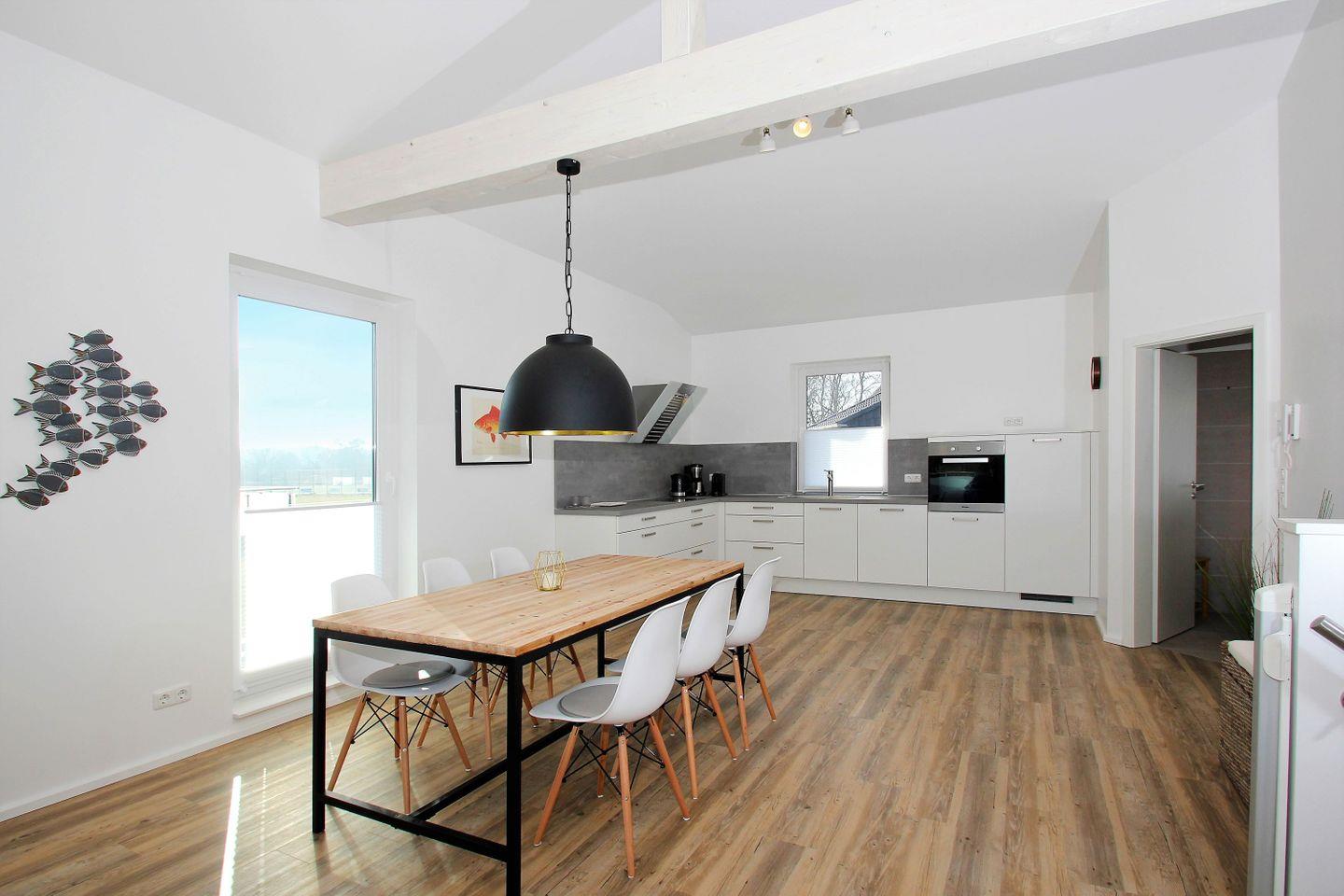 KÜCHE // offene Wohnküche mit Essbereich, 4-Platten Ceranherd, Spülmaschine, Kühlschrank mit Gefrierfach, Backofen, Mikrowelle, Toaster, Wasserkocher, Kaffeemaschine, reichlich Besteck, Geschirr und Küchenutensilien ++