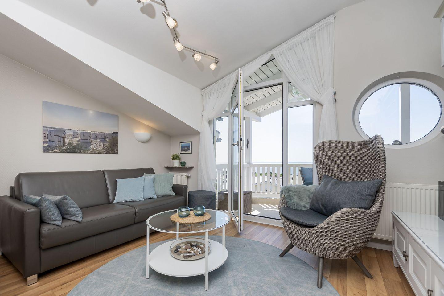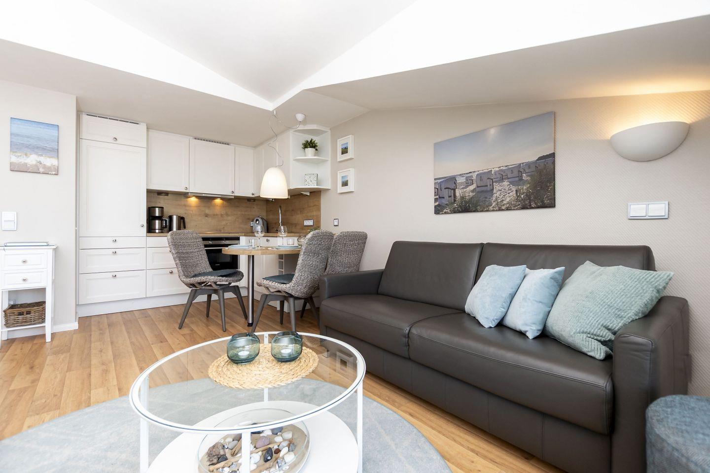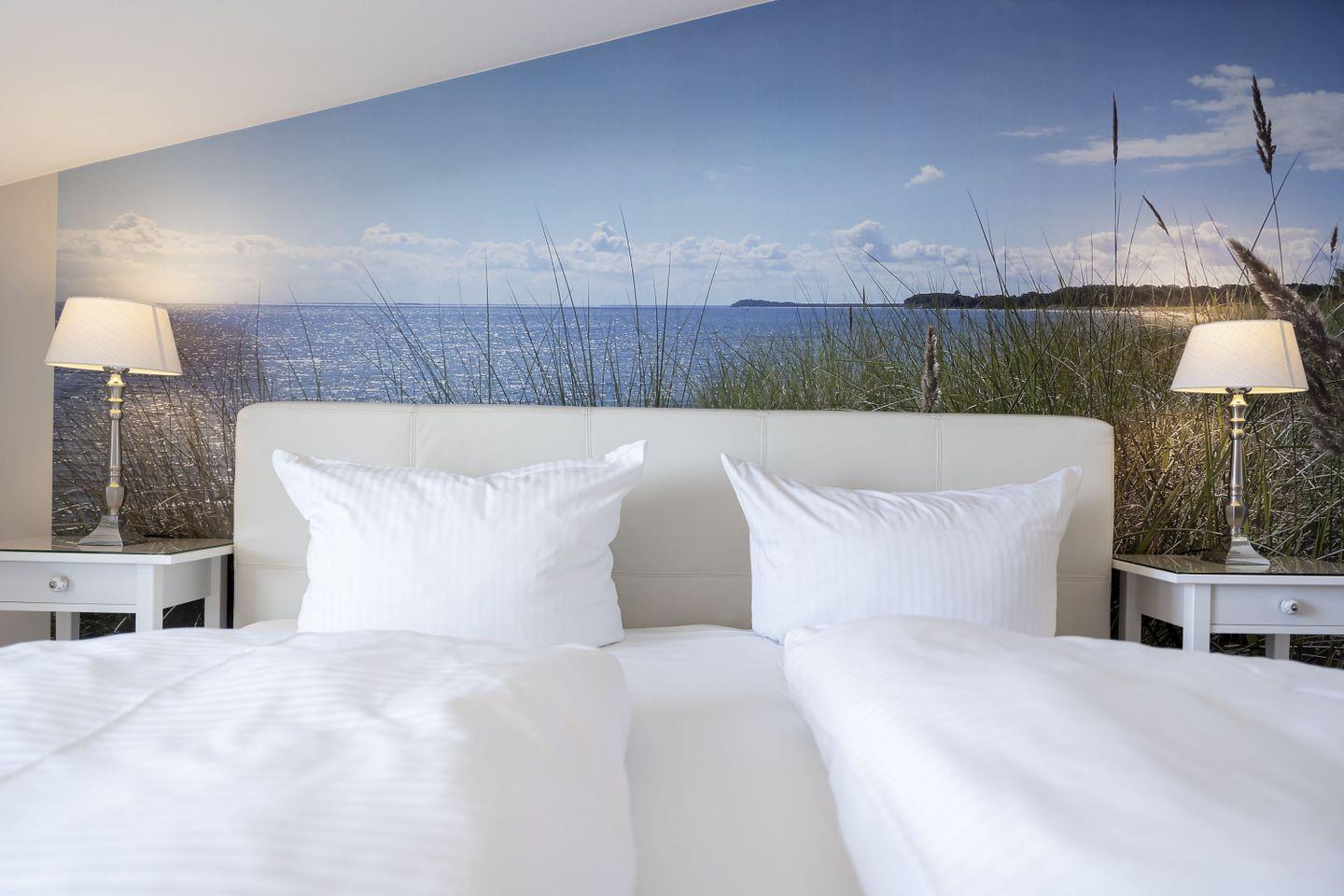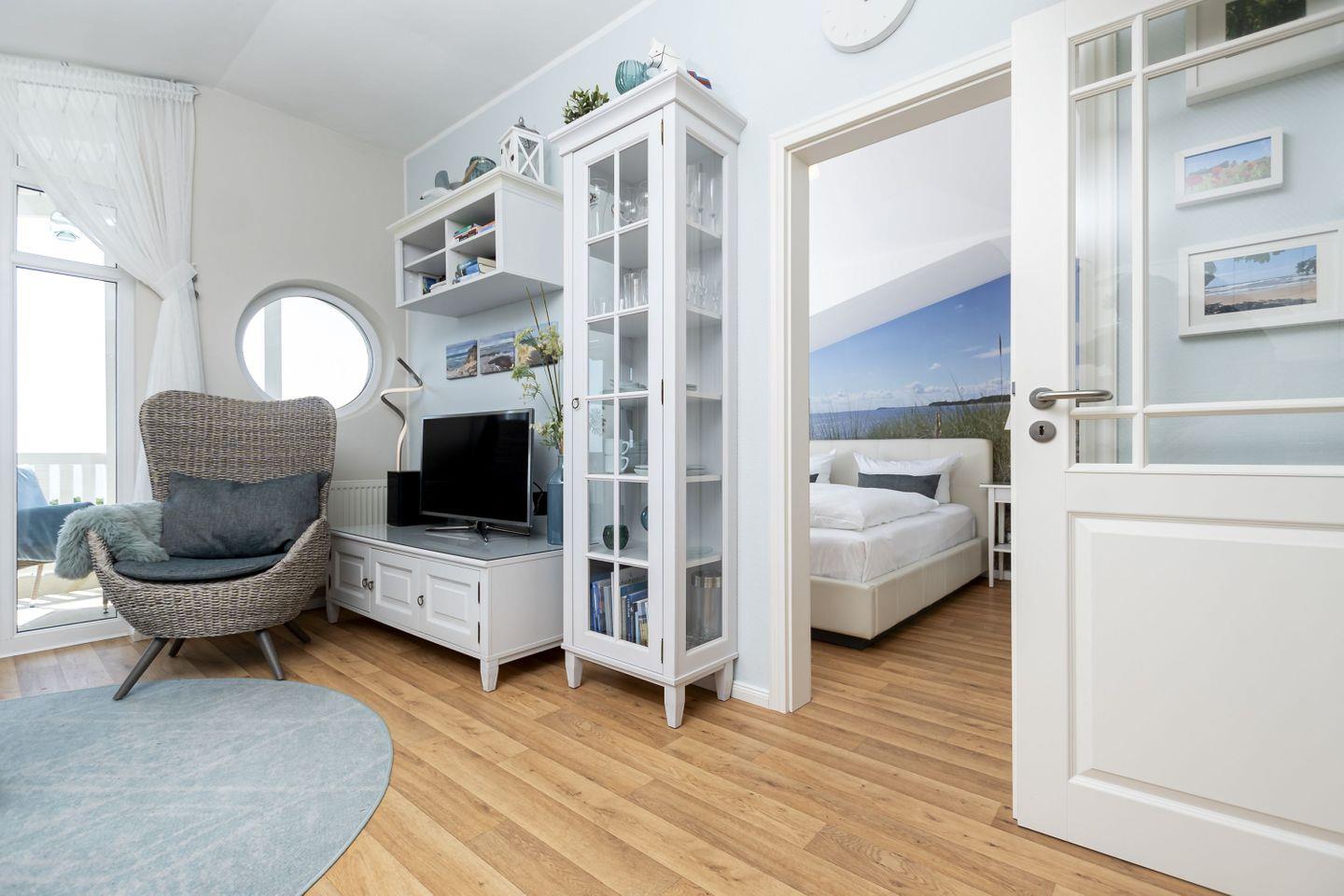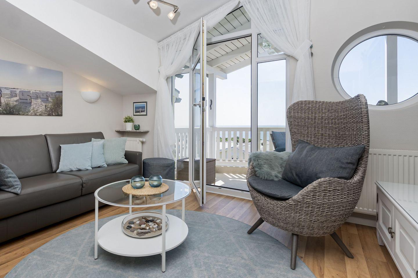 Moderne 2-Raum-Ferienwohnung mit Meerblick, Balkon und kostenfreiem Zugang zu Schwimmbad und Sauna in ruhiger Lage in Göhren.