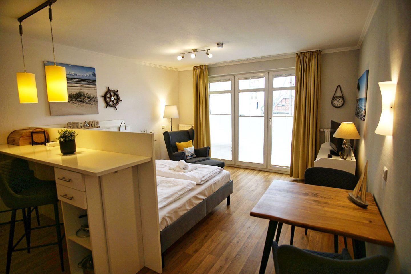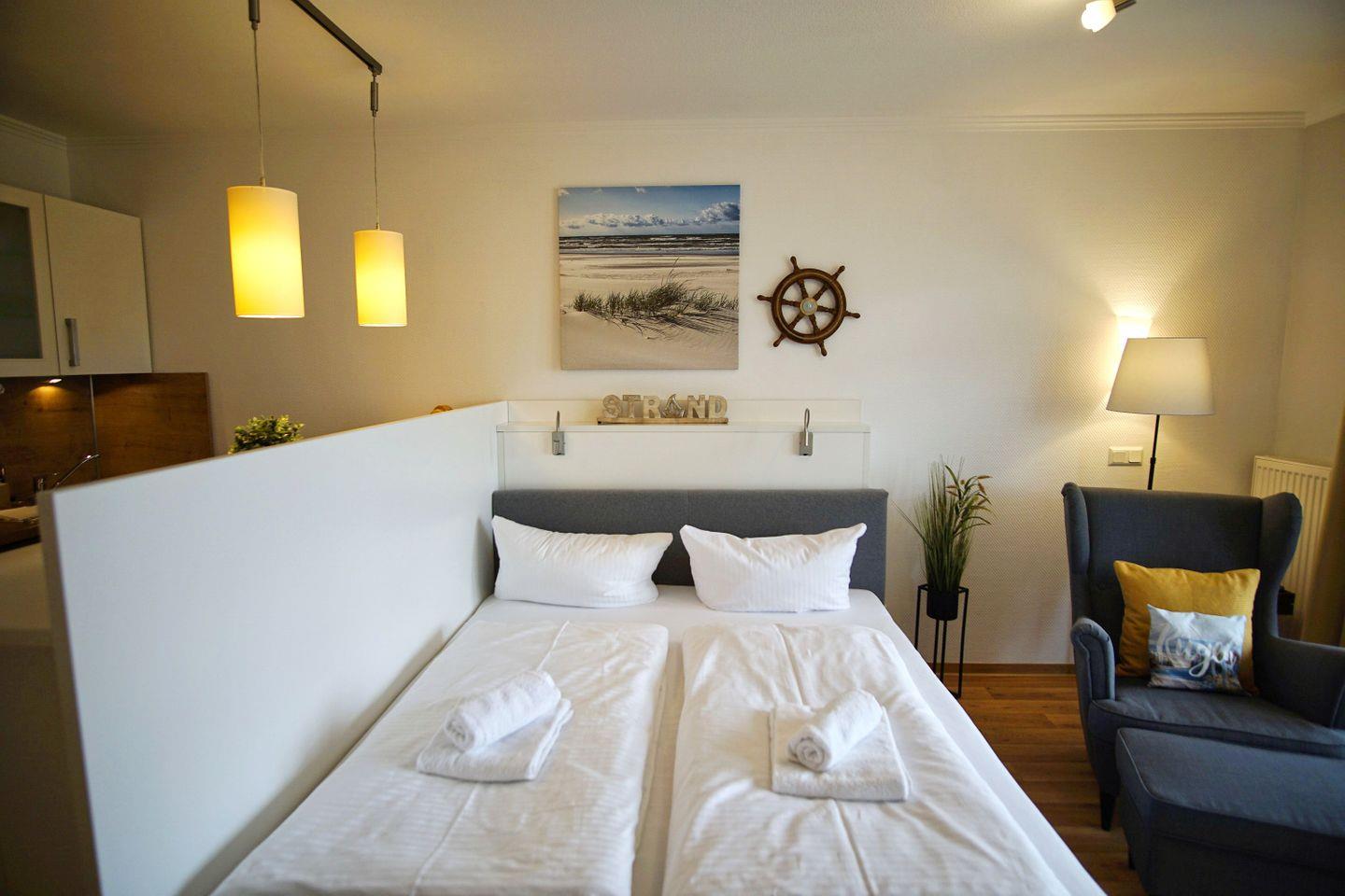 ALLGEMEINE ECKDATEN // 1-Raum-Ferienwohnung für bis zu 2 Personen, 40m², Terrasse mit eingeschränktem Meerblick ++