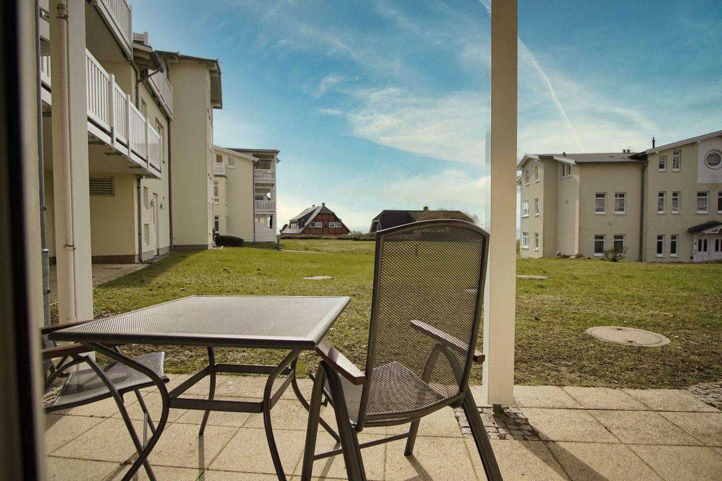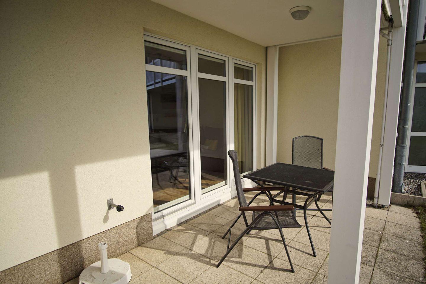 Terrasse, gratis Nutzung vom AHOI Erlebnisbad und Sauna - Meeresblick FeWo 30