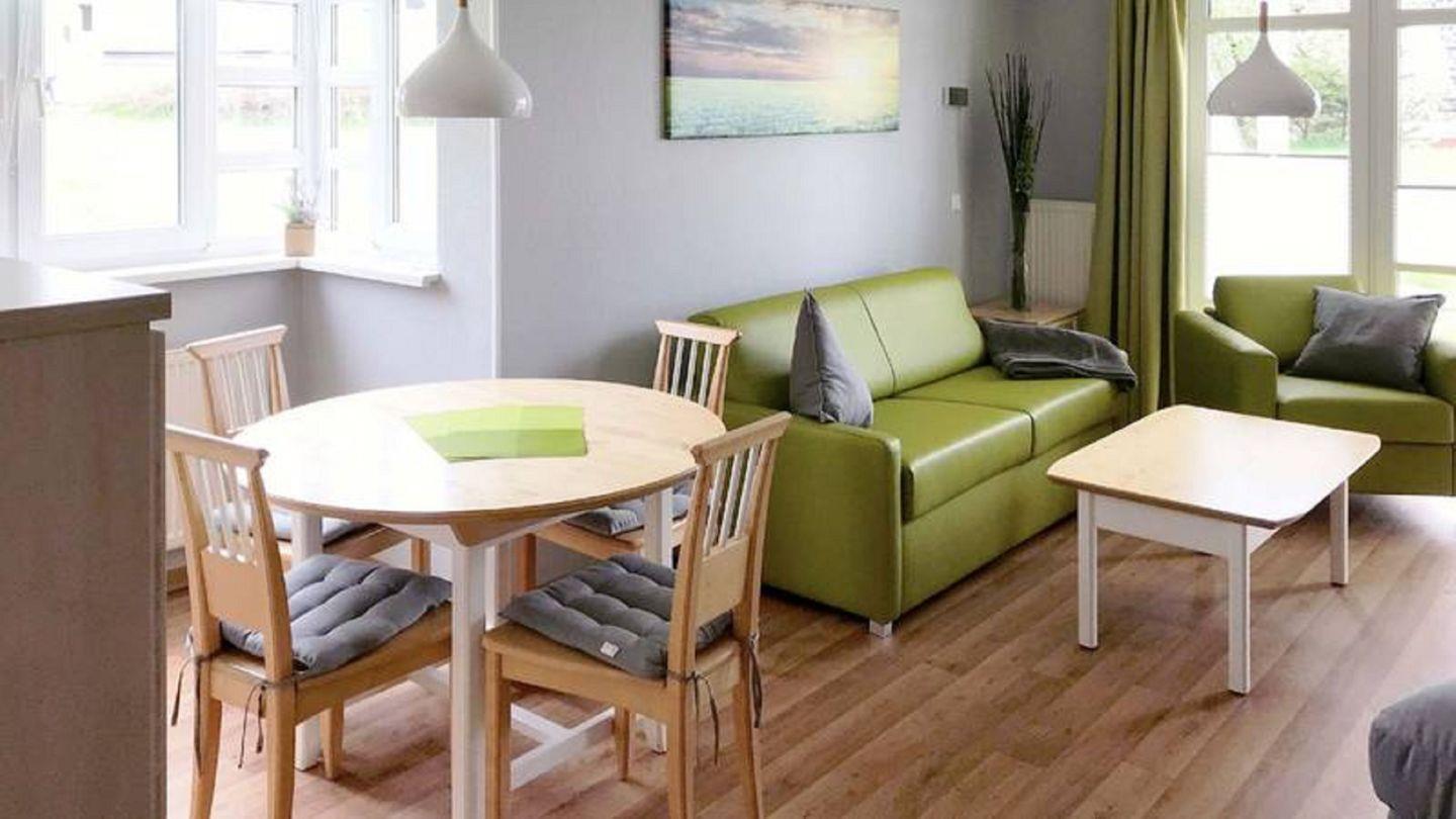 WOHNEN // Wohnraum mit Essbereich, Sitzgarnitur mit bequemer Schlafcouch, Kabel-TV ++