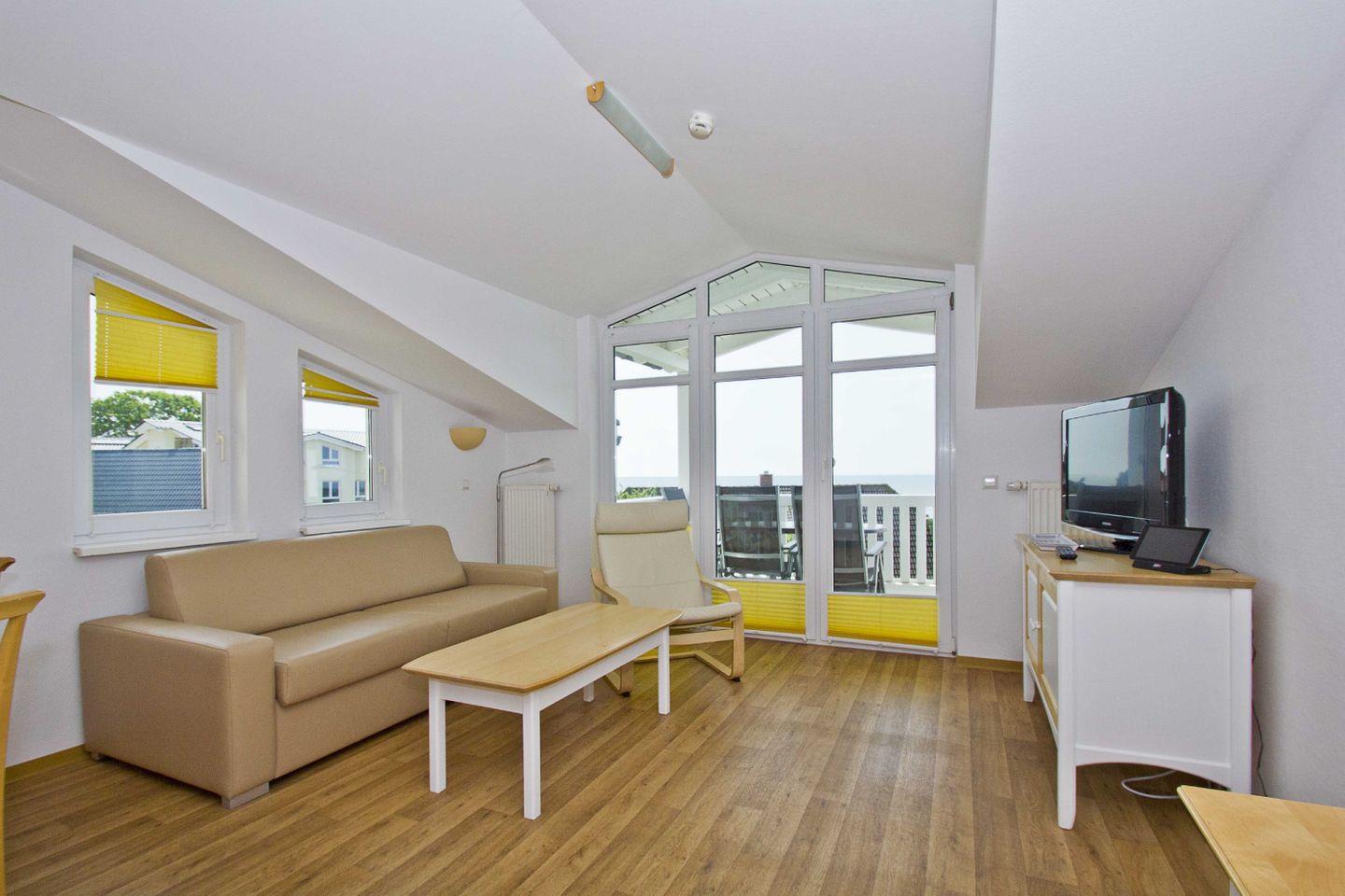Komfortable Ferienwohnung in Göhren mit Meerblick, Balkon, kostenfreiem Schwimmbad- und Saunazugang und Nähe zum Strand.
