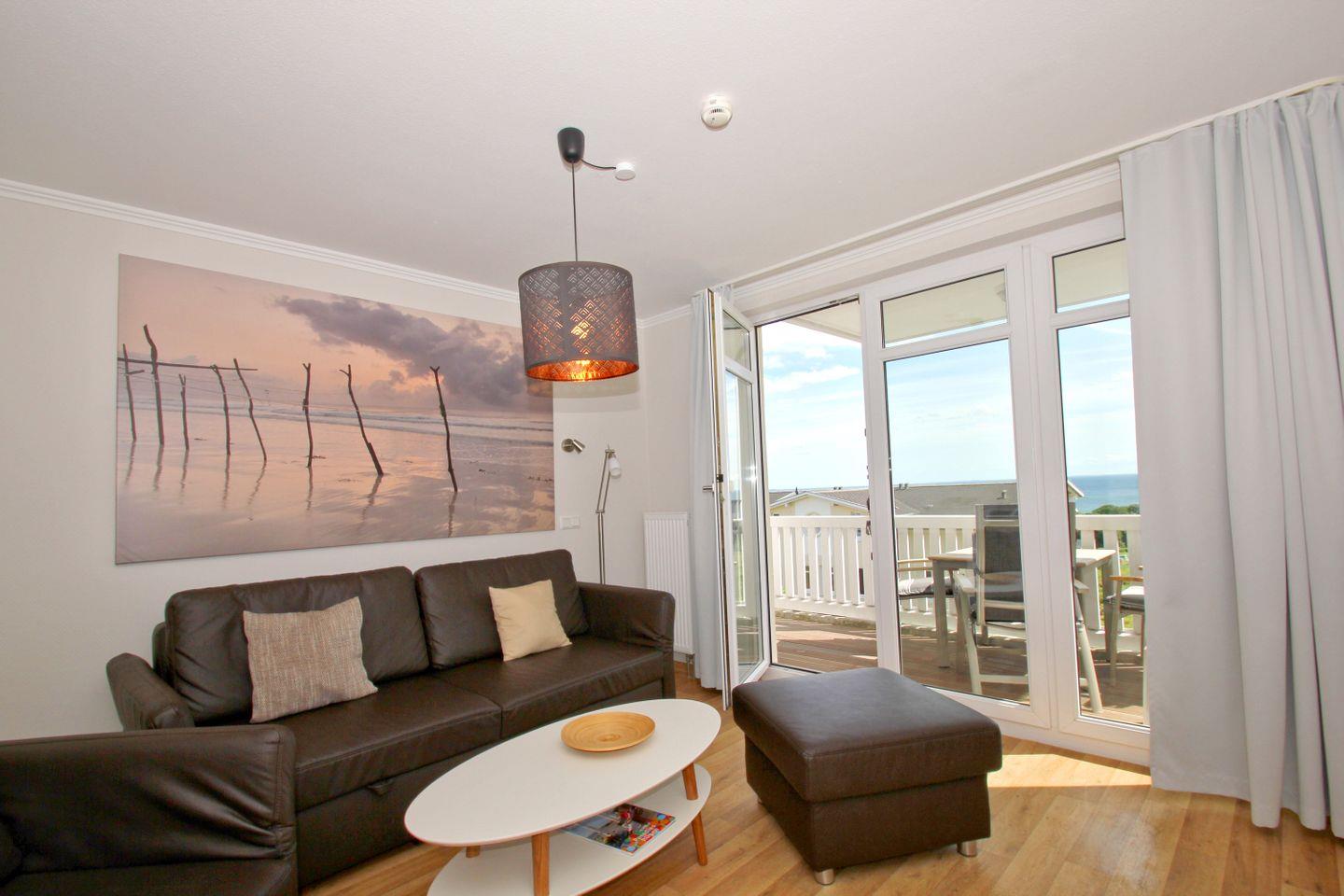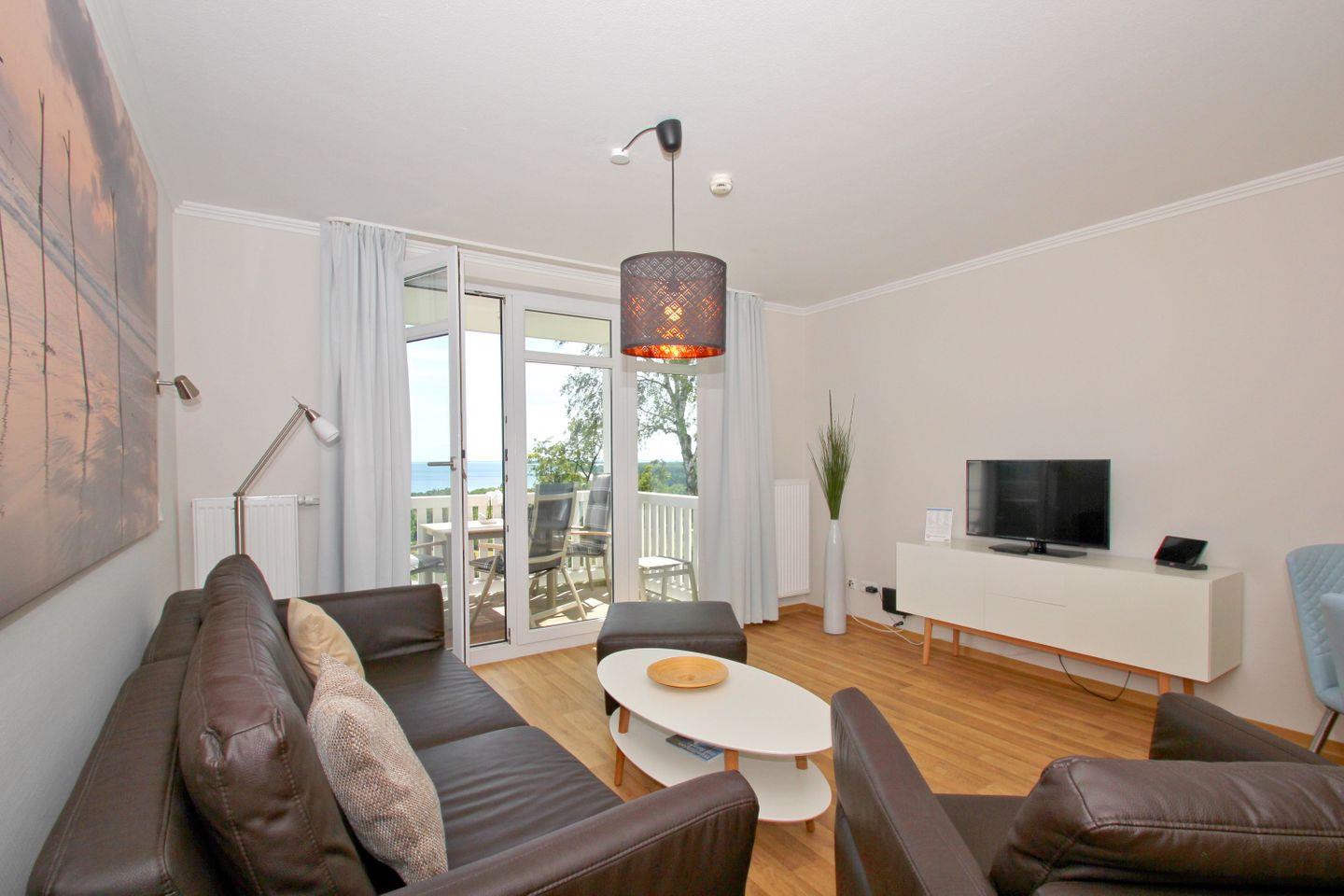 Moderne 3-Raum-Ferienwohnung mit Meerblick, Balkon und kostenfreiem Zugang zu Schwimmbad und Sauna in Göhren.