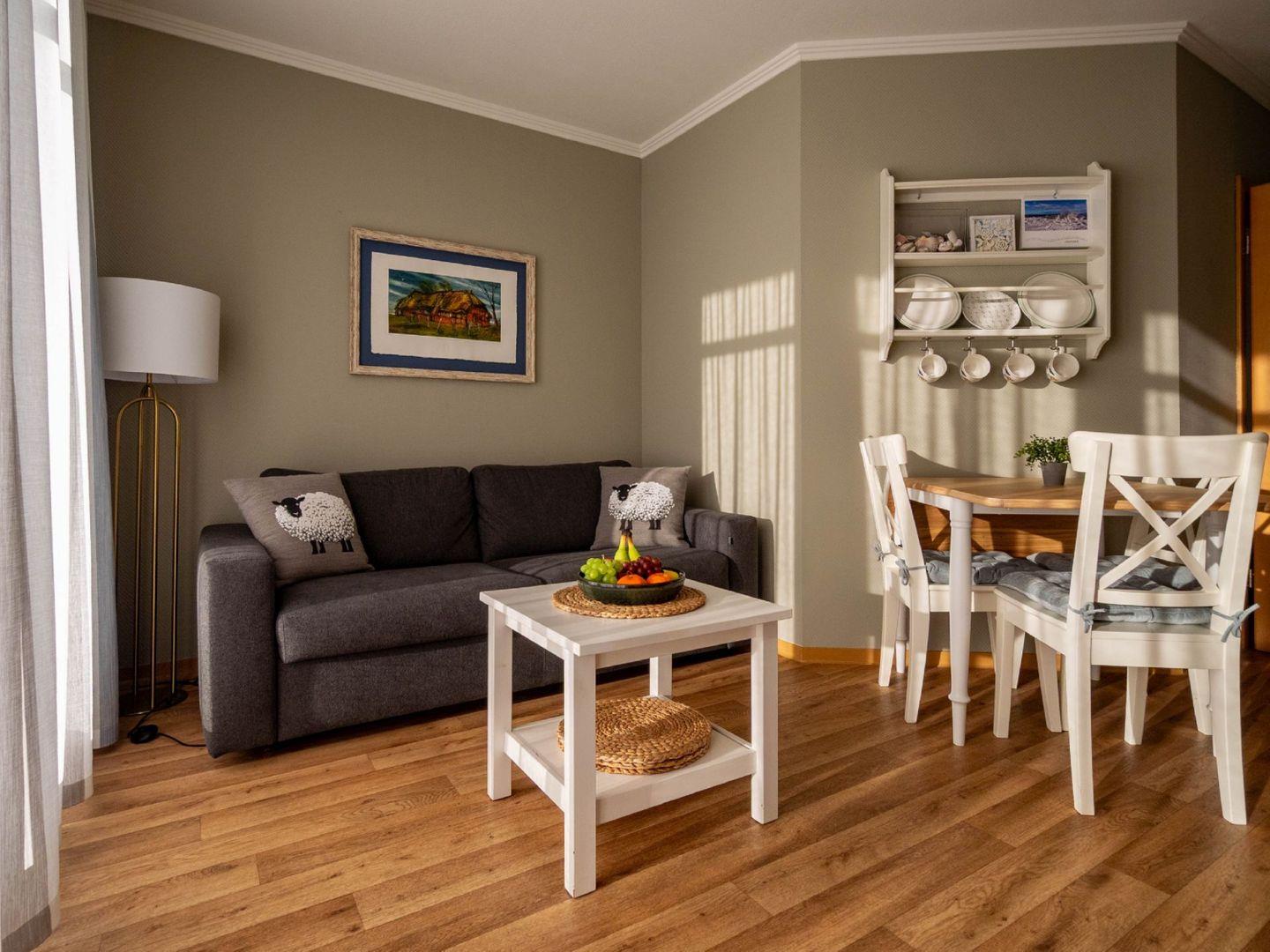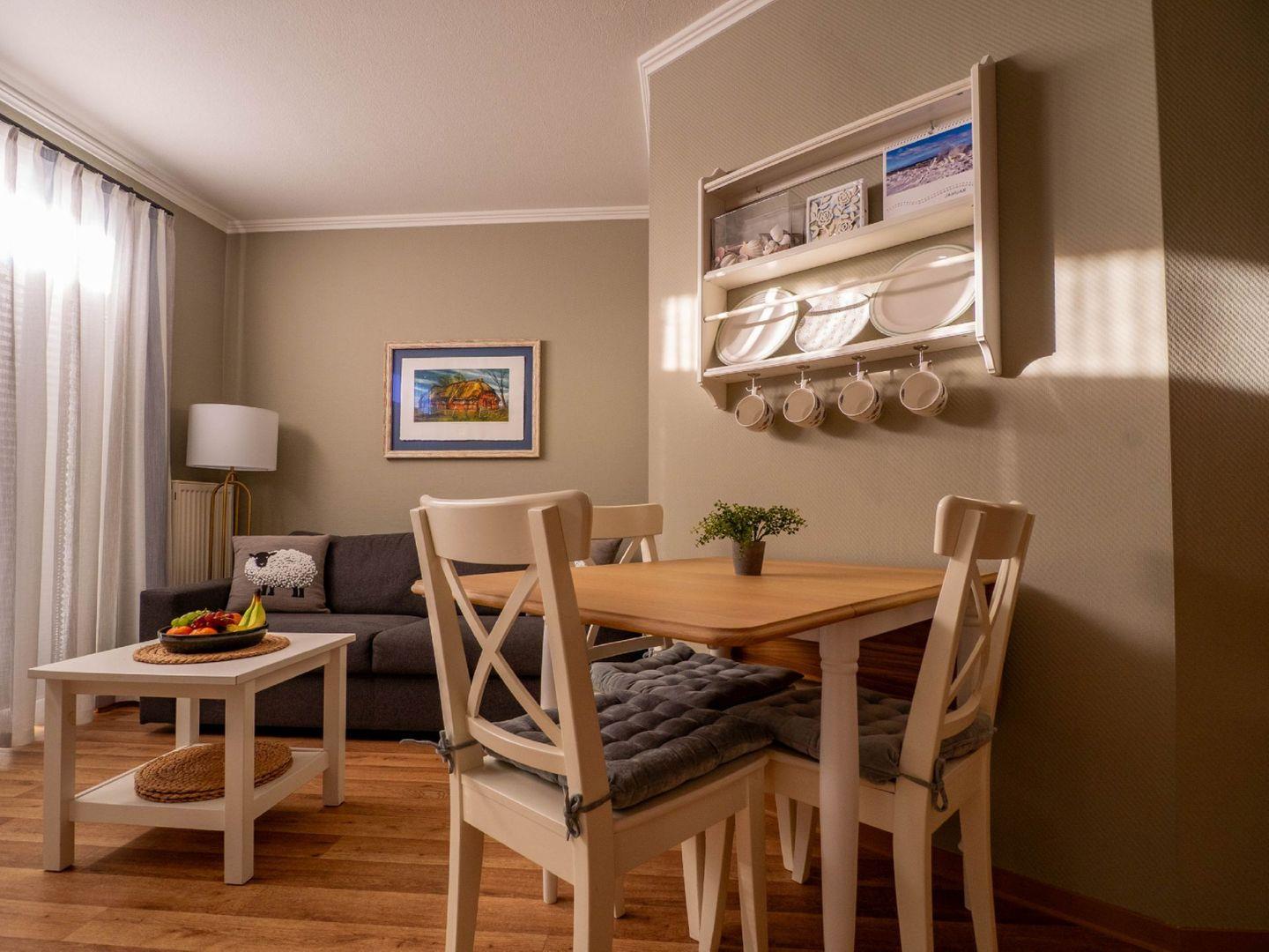 WOHNEN // Wohnraum mit Essbereich, Sitzgarnitur mit bequemer Schlafcouch, Flachbild-TV (Kabel) ++