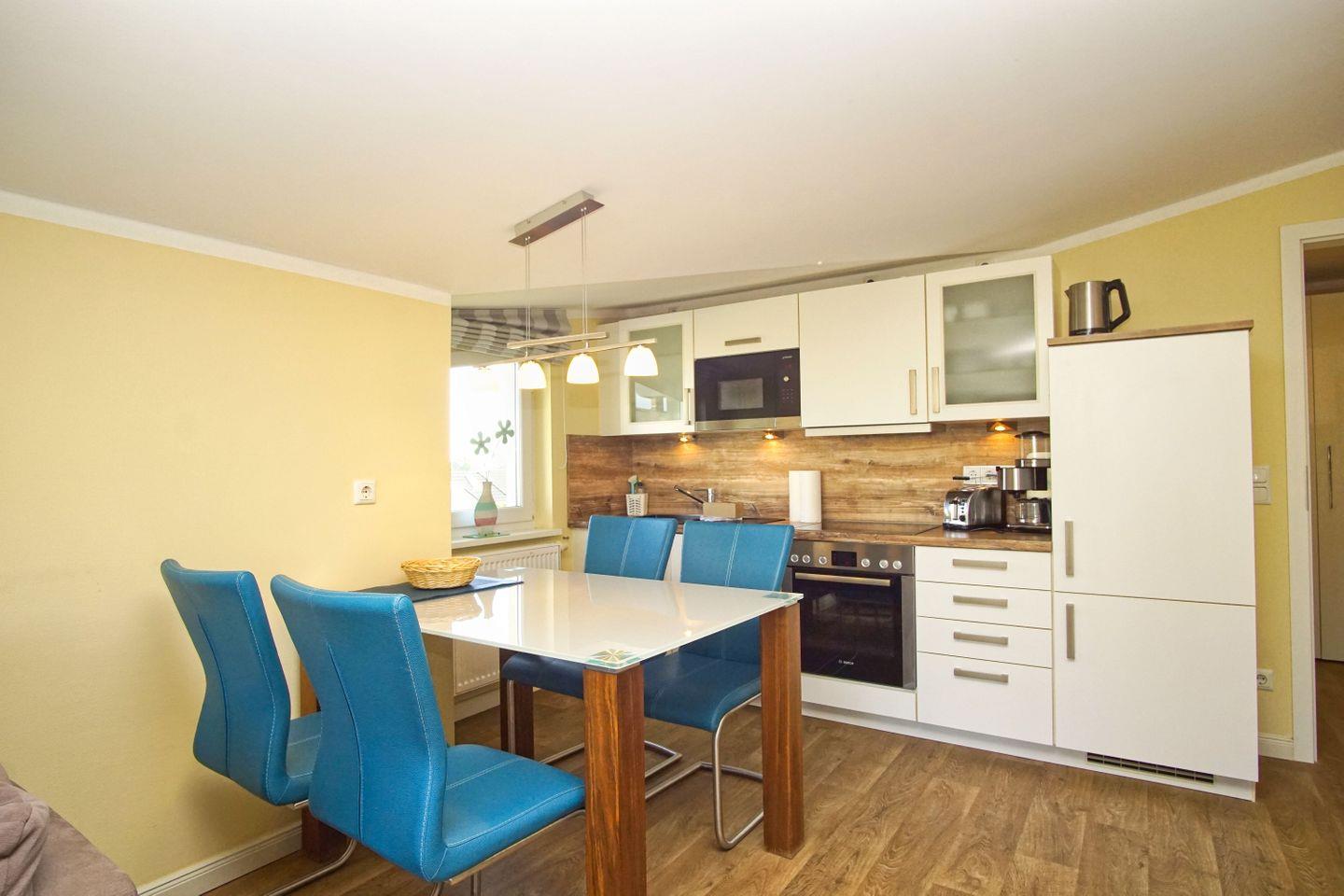 KÜCHE // Küchenzeile, Ceranfeld, Spülmaschine, Kühlschrank mit Gefrierfach, Backofen, Mikrowelle, Toaster, Wasserkocher, Kaffeemaschine, Espressokocher, reichlich Besteck, Geschirr und Küchenutensilien ++