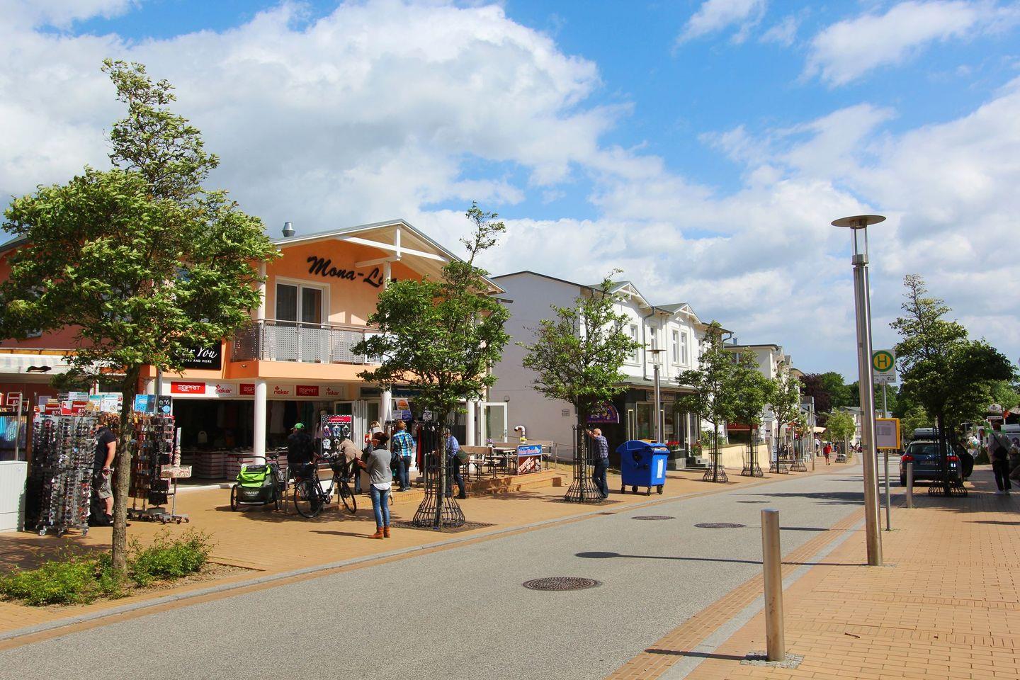 Bis zur Flaniermeile des Ostseebades Göhren, auf der sich sowohl Restaurants und Bars als auch Cafés und zahlreiche Geschäfte befinden, sind es nur ca. 200m.