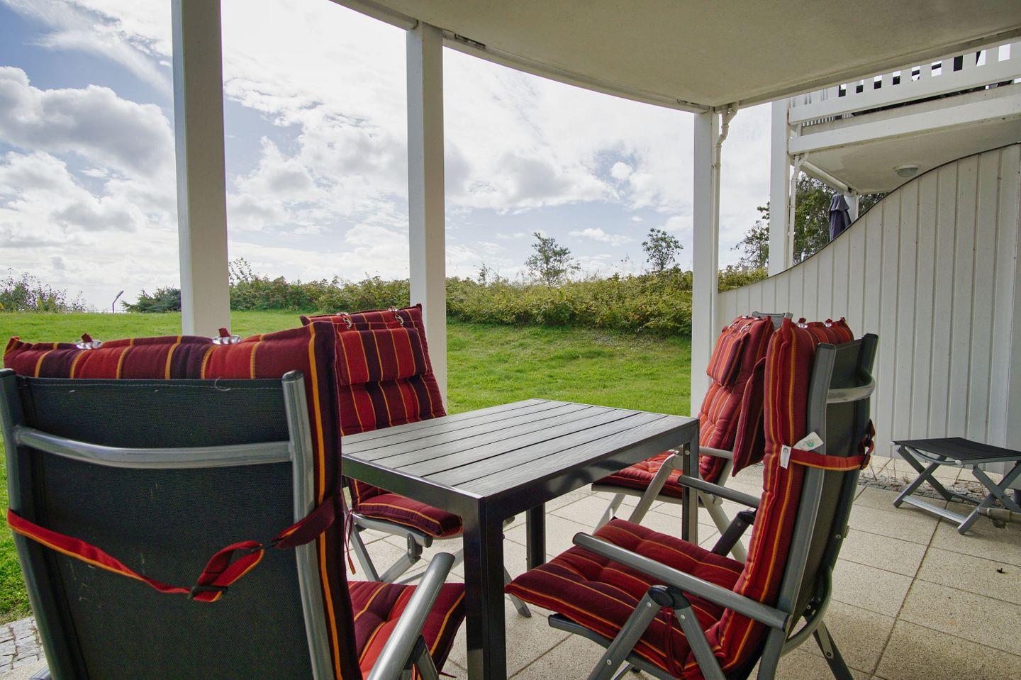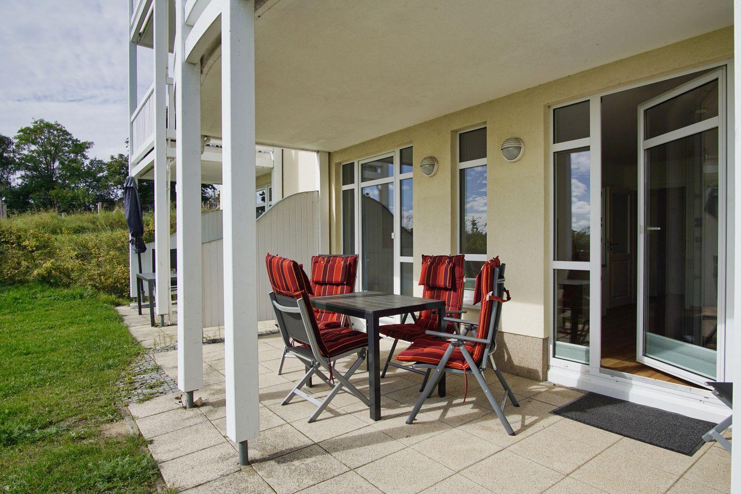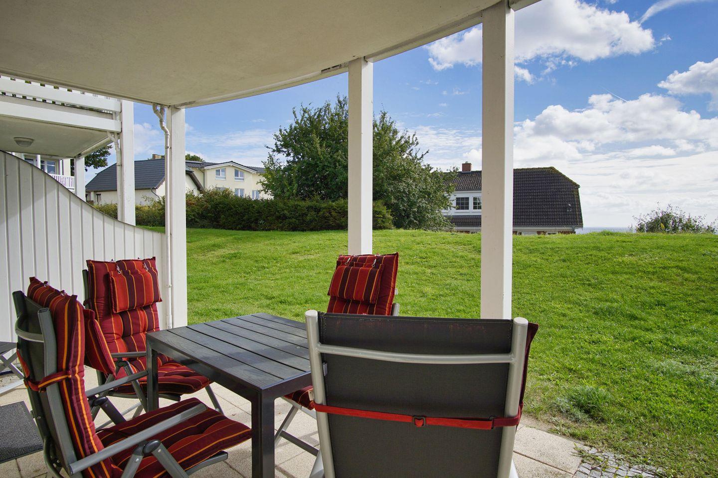 Terrasse, gratis Nutzung vom AHOI Erlebnisbad und Sauna - Meeresblick FeWo 11
