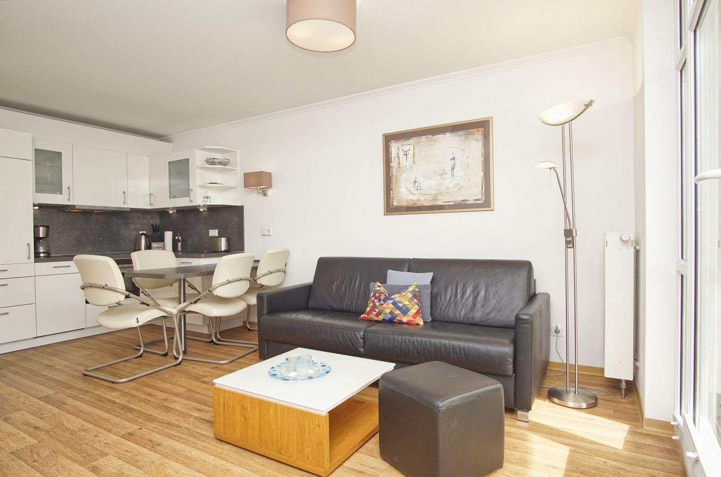 WOHNEN // Wohnraum mit Essbereich, Sitzgarnitur mit bequemer Schlafcouch, Kabel-TV ++