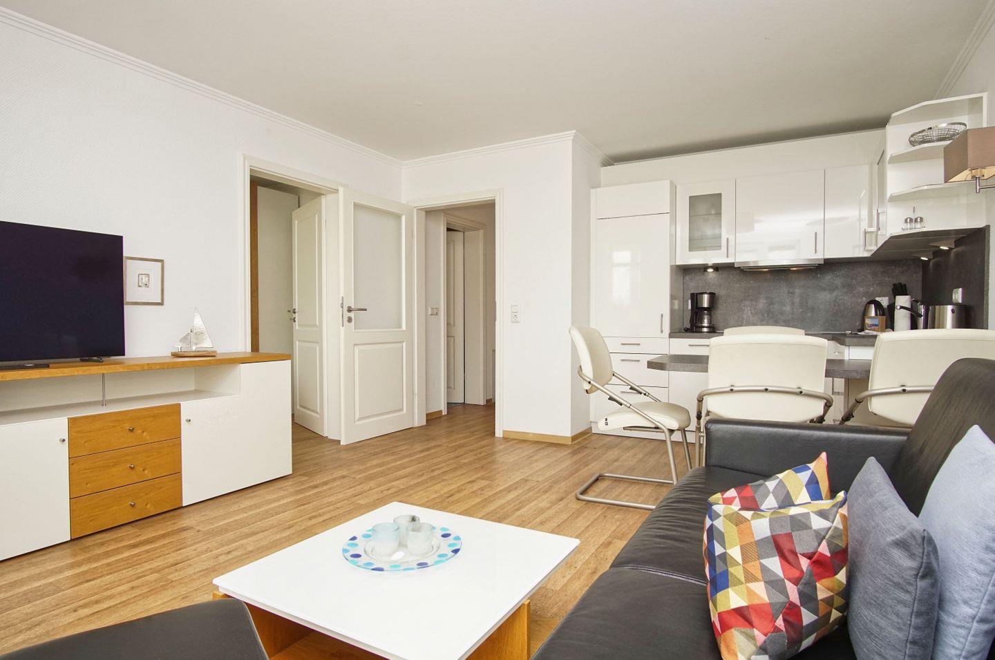 Die 1-, 2- und 3- Raum Ferienwohnungen in den Meeresblick Residenzen sind nicht nur großzügig geschnitten und komfortabel eingerichtet, die meisten verfügen darüber hinaus über eine traumhafte Aussicht über Südost Rügen und die weite Ostsee. Kostenloses WLan ist in dieser Residenzanlage selbstverständlich. Pro Ferienwohnung steht Ihnen ein PKW-Stellplatz (kostenfrei) zur Verfügung.