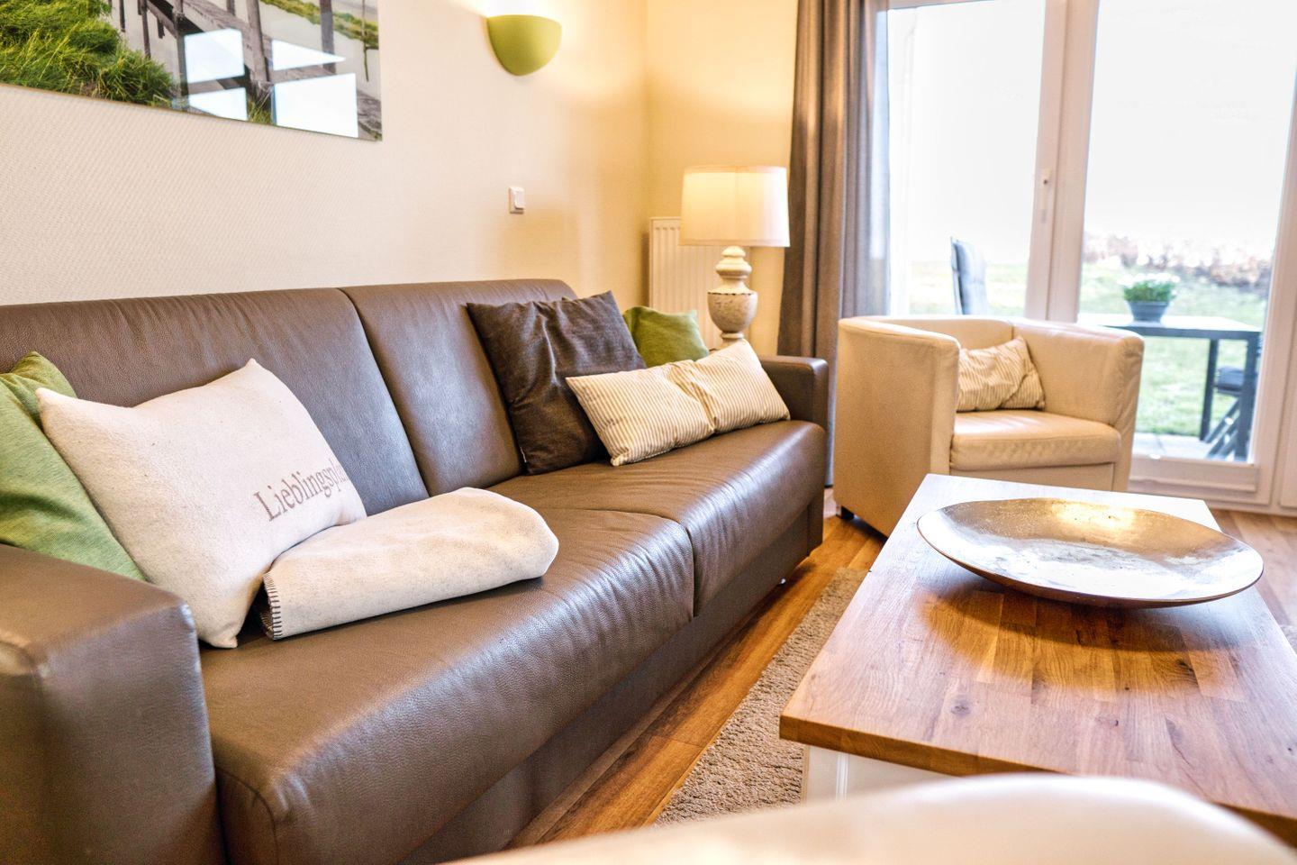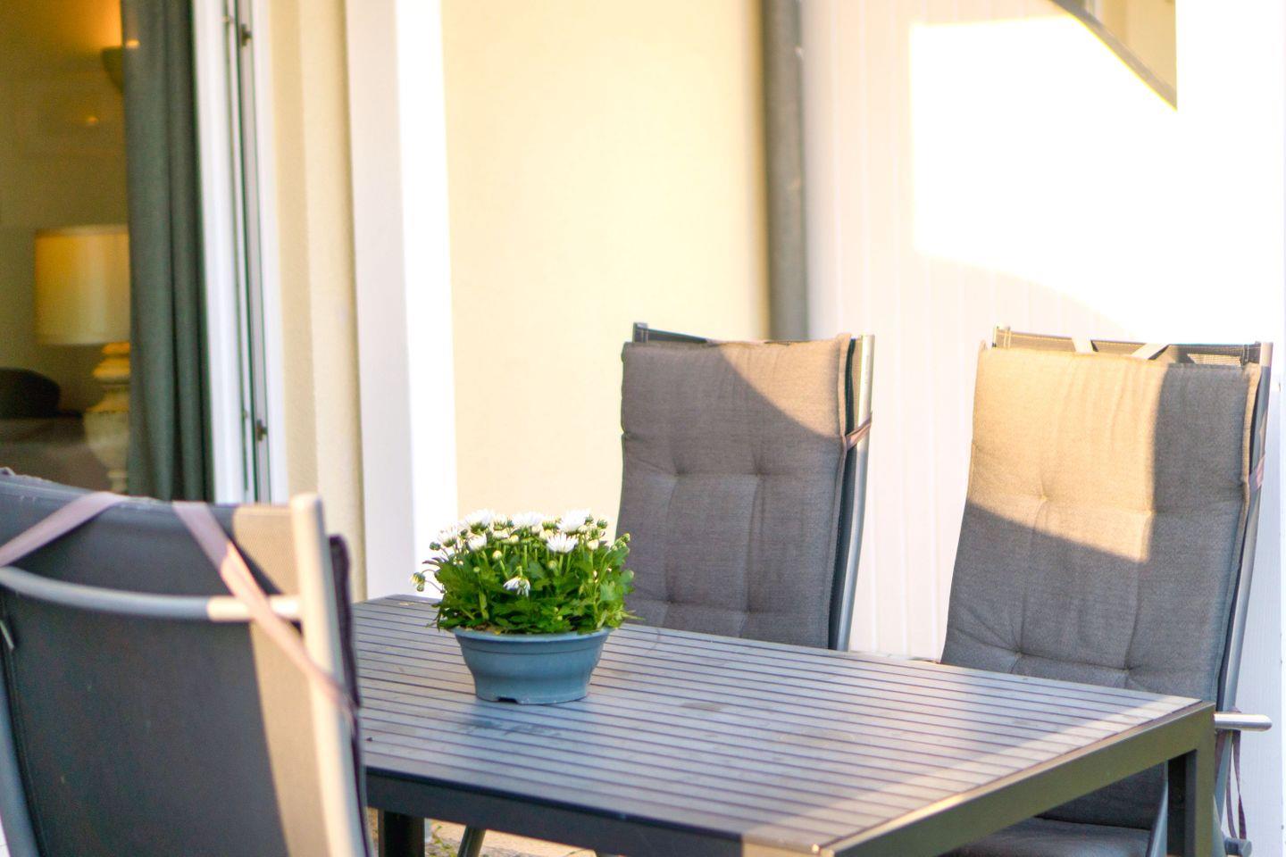 Terrasse, gratis Nutzung vom AHOI Erlebnisbad und Sauna - Meeresblick FeWo 12