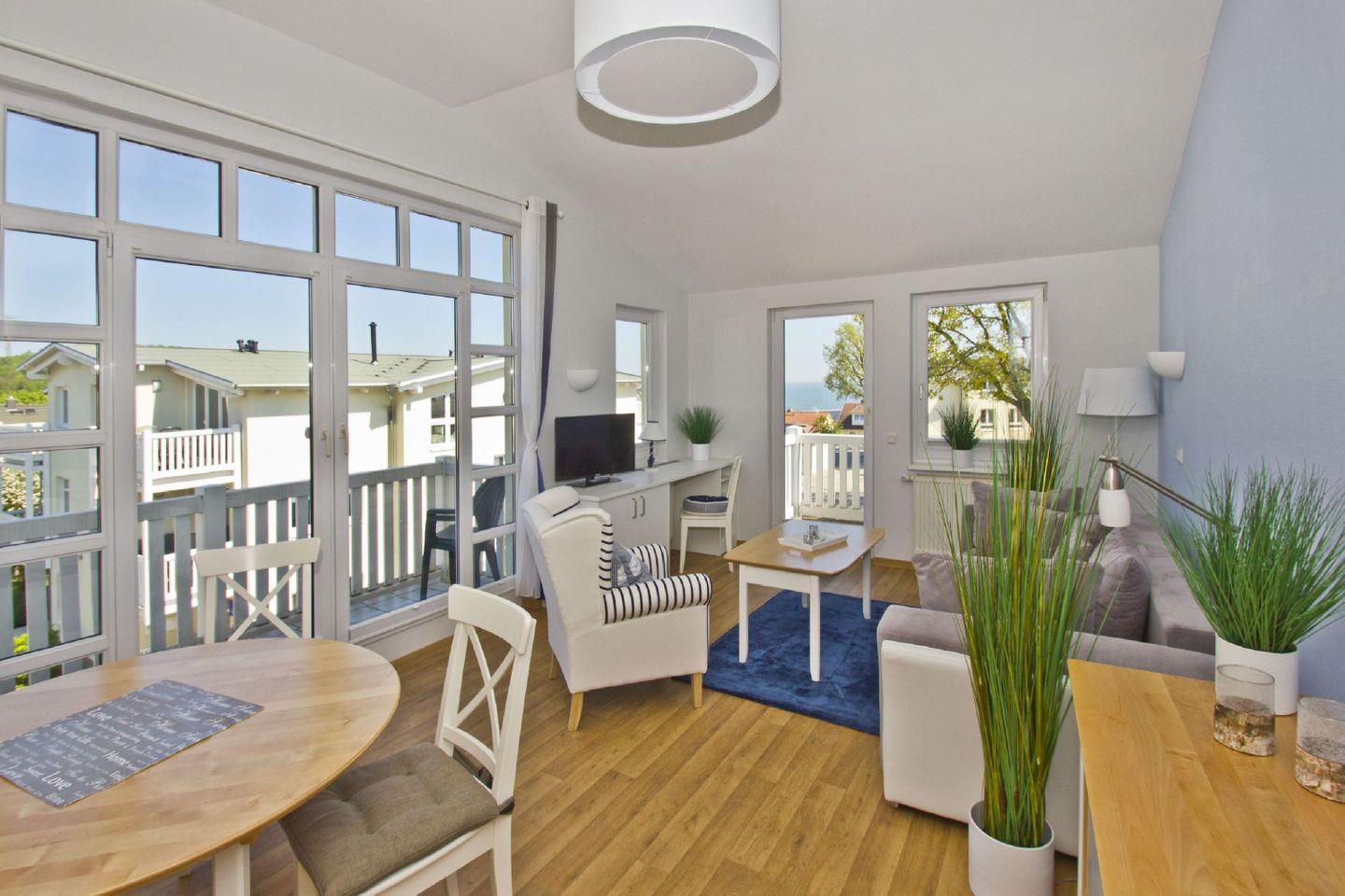 Die 1-, 2- und 3- Raum Ferienwohnungen in den Meeresblick Residenzen sind nicht nur großzügig geschnitten und komfortabel eingerichtet, die meisten verfügen darüber hinaus über eine traumhafte Aussicht über Südost Rügen und die weite Ostsee. Kostenloses WLan ist in dieser Residenzanlage selbstverständlich. Pro Ferienwohnung steht Ihnen ein PKW-Stellplatz (kostenfrei) zur Verfügung.