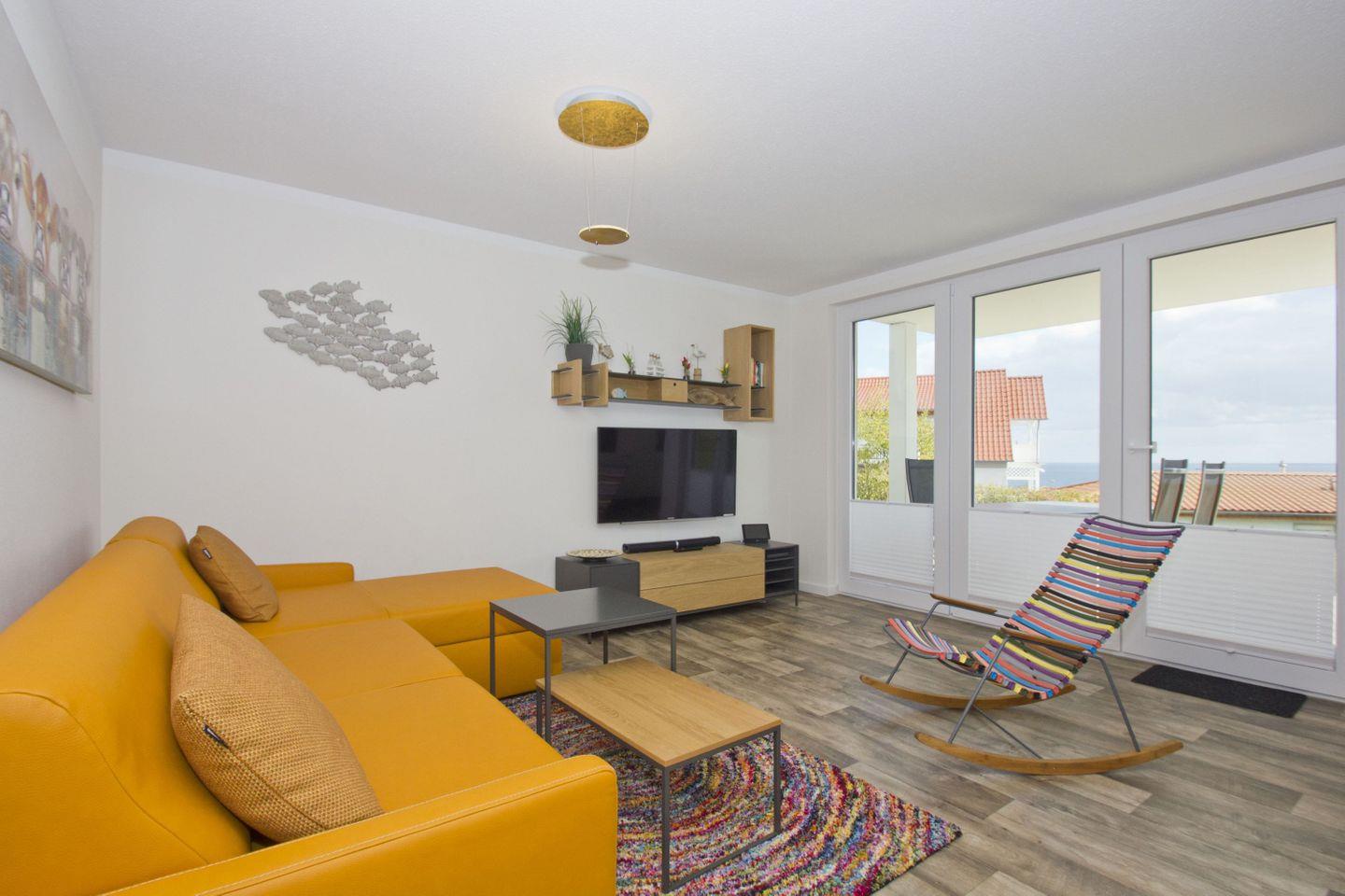 Komfortable Ferienwohnung in Göhren mit Terrasse, Meerblick, kostenlosem WLAN und Zugang zu Schwimmbad und Sauna.