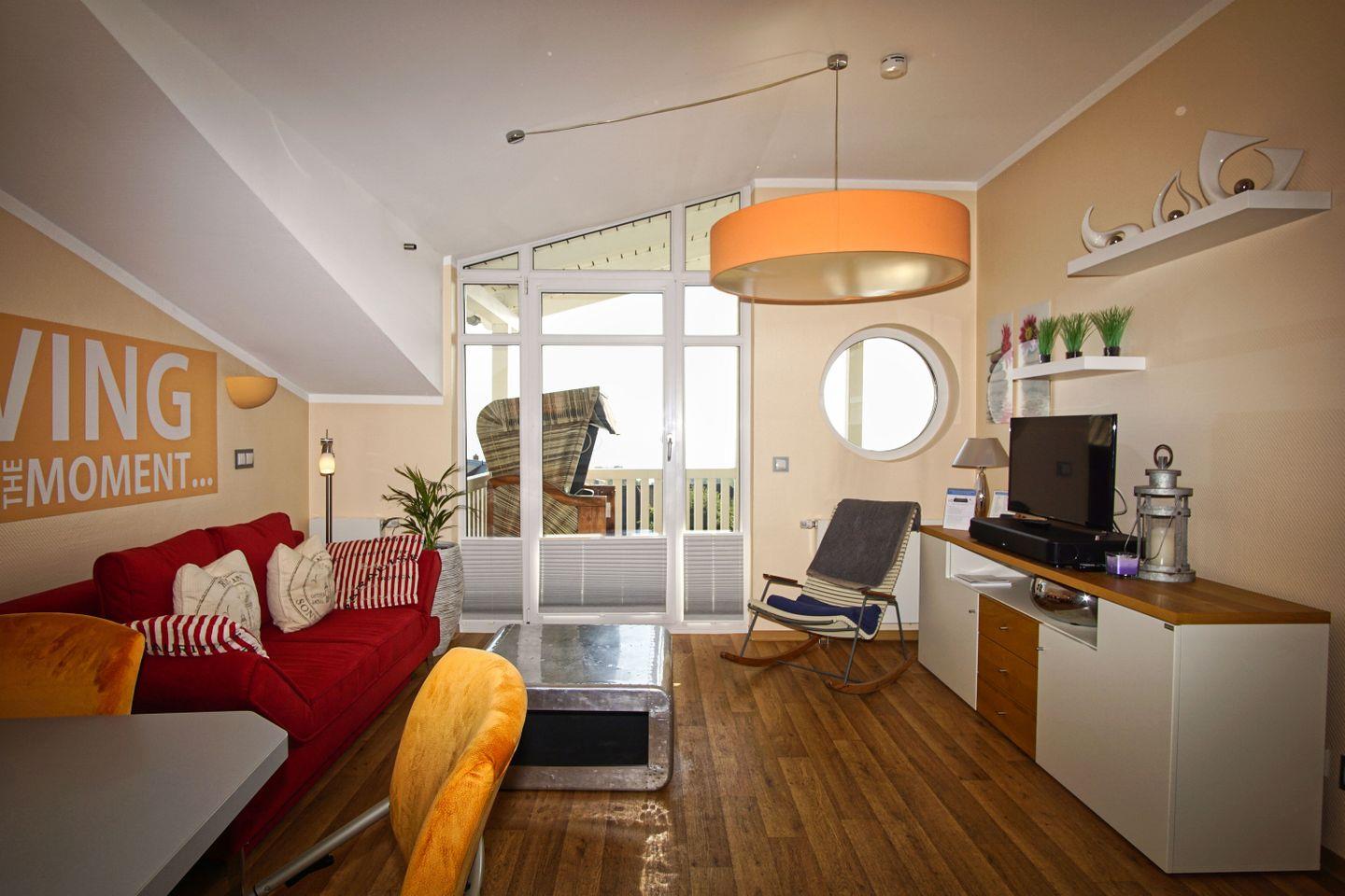 Genießen Sie Meerblick und kostenlosen Zugang zu Hallenbad und Sauna in dieser komfortablen 2-Raum-Ferienwohnung in Göhren.