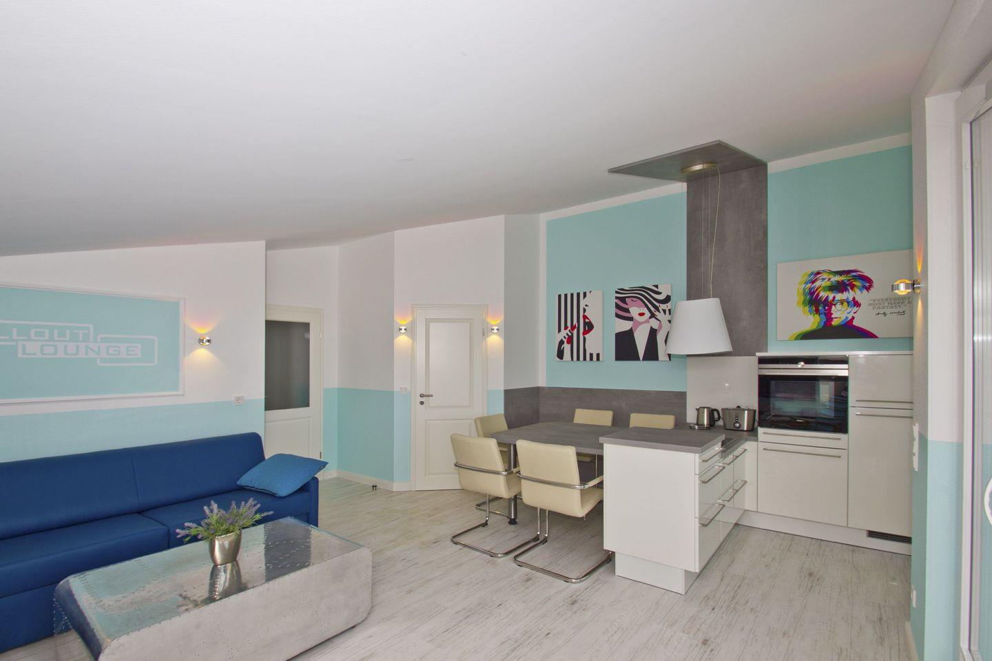 Moderne Ferienwohnung mit Meerblick, Balkon, kostenfreiem WLAN und Zugang zu Hallenbad und Sauna in Göhren.