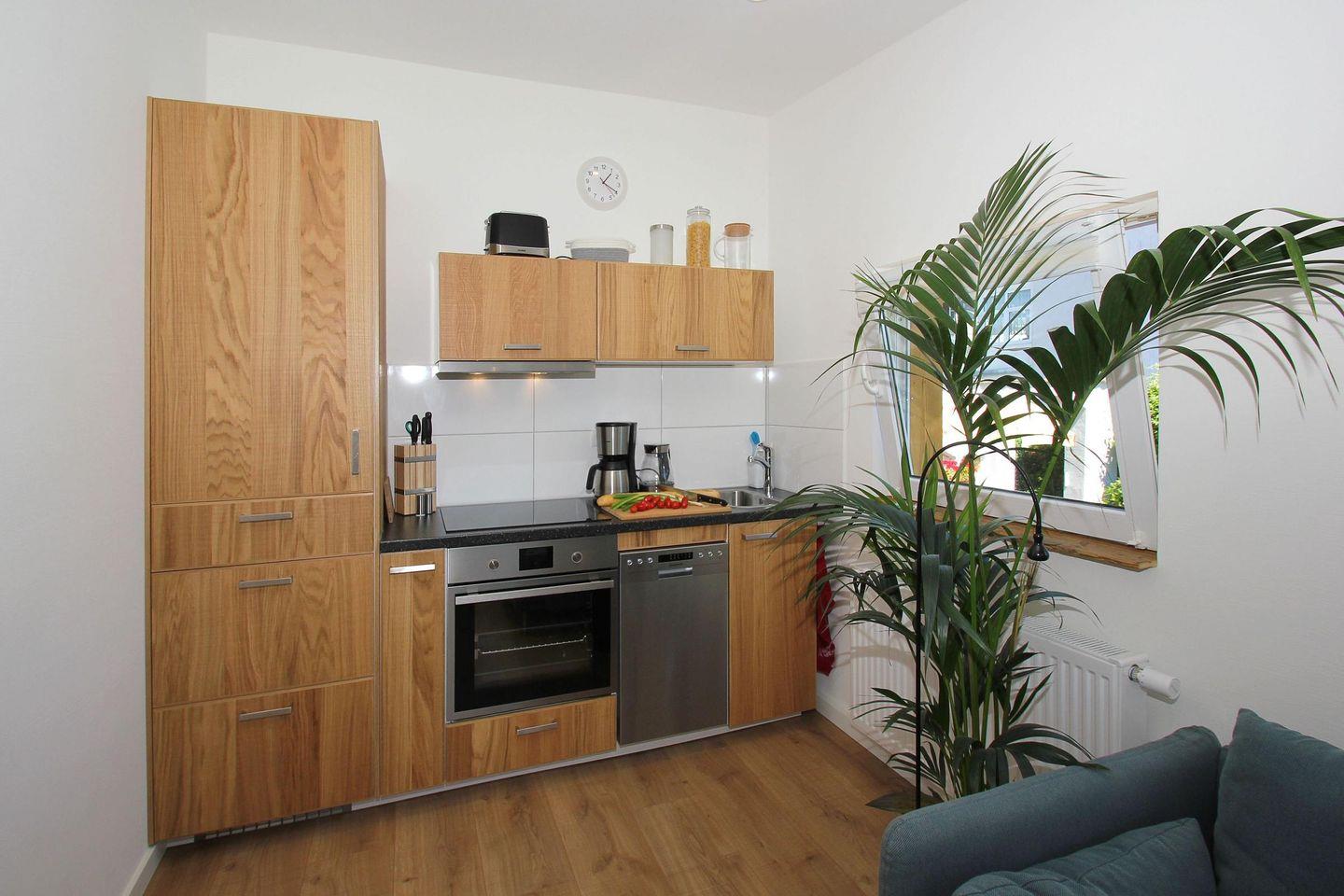 KÜCHE // offene Küche, 4-Felder Ceranherd, Kühlschrank mit Gefrierfach, Spülmaschine, Toaster, Wasserkocher, Kaffeemaschine, reichlich Besteck, Geschirr und Küchenutensilien ++