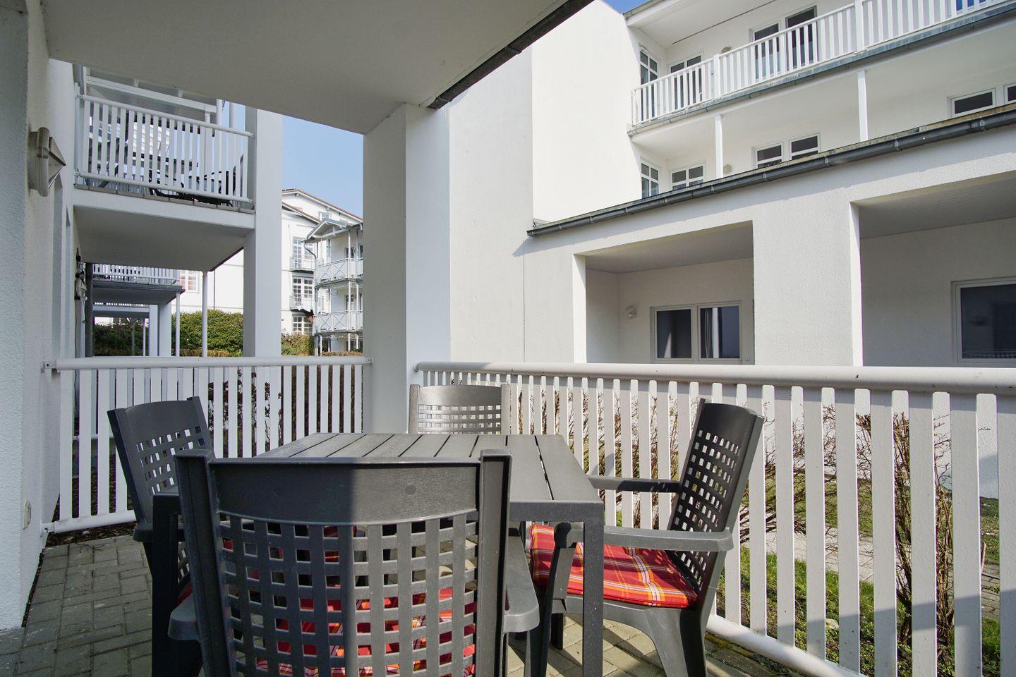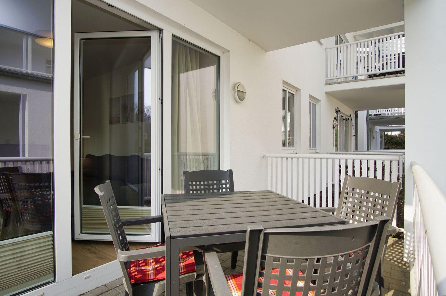 Terrasse, gratis Nutzung vom AHOI Erlebnisbad und Sauna - Villa Karola FeWo 06