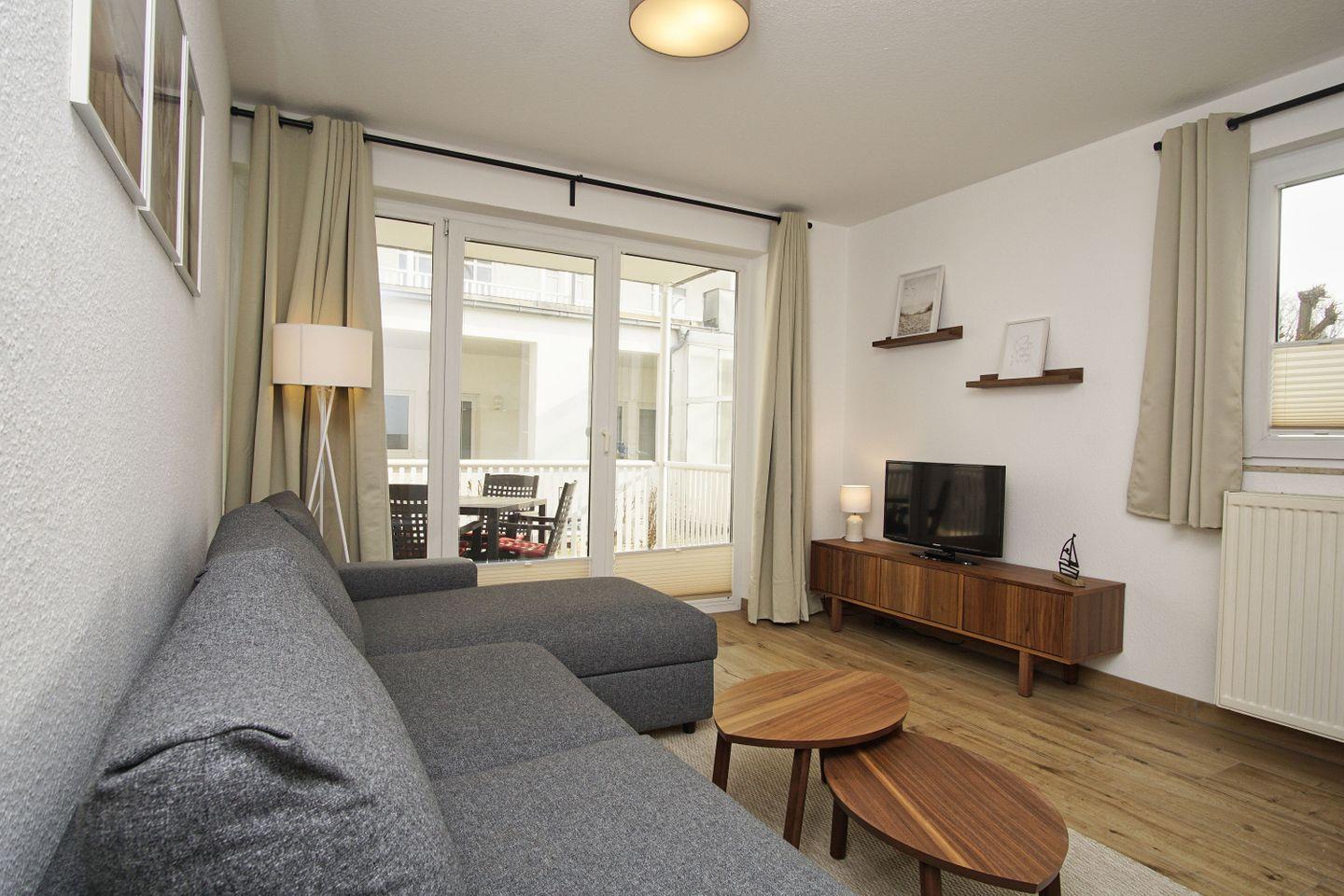 Gemütliche 2-Raum-Ferienwohnung in Göhren mit Terrasse und kostenfreiem Zugang zum AHOI Erlebnisbad und Sauna.