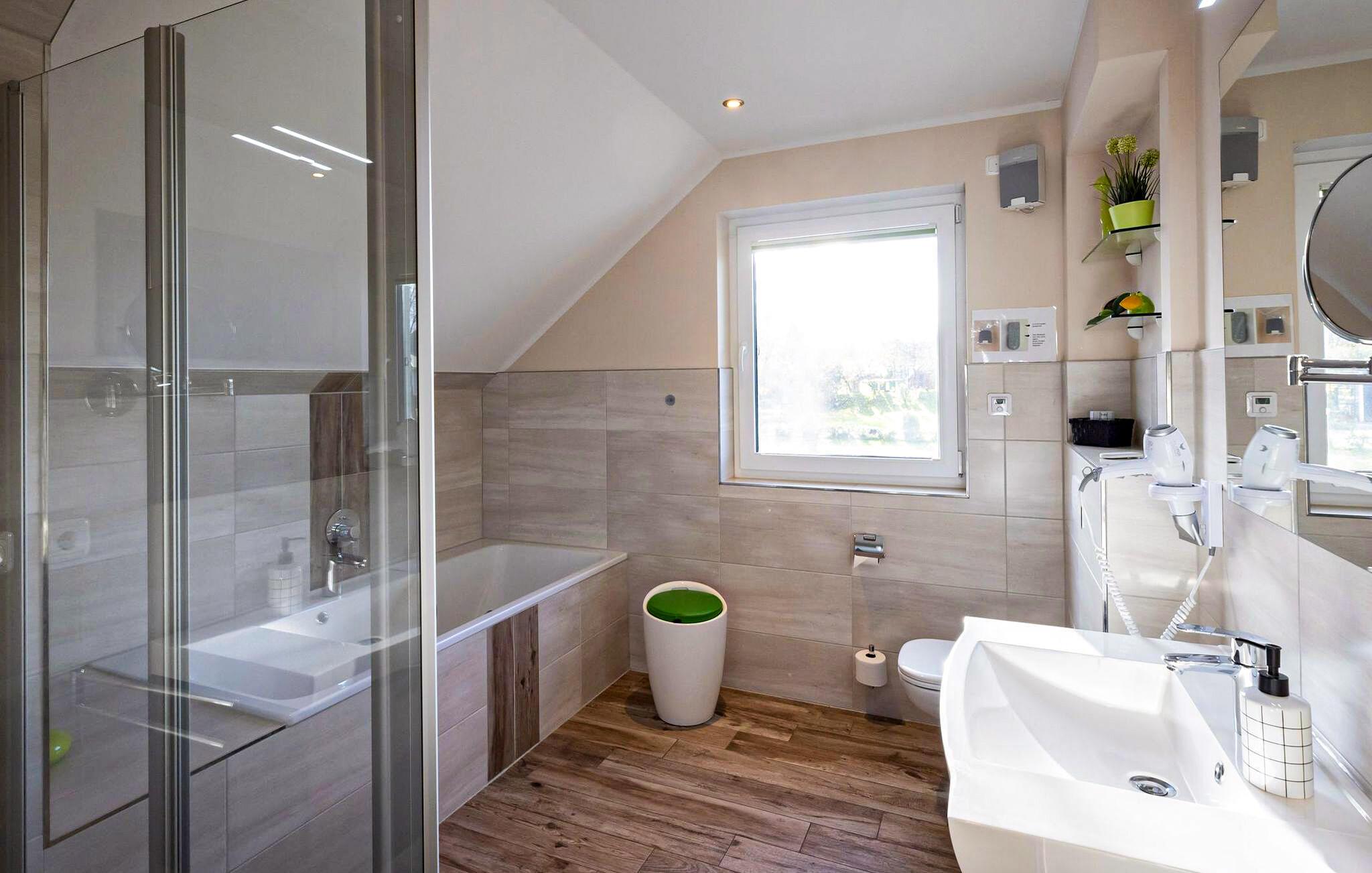 - WC mit warmem und kaltem Wasser, Dusche und Badewanne